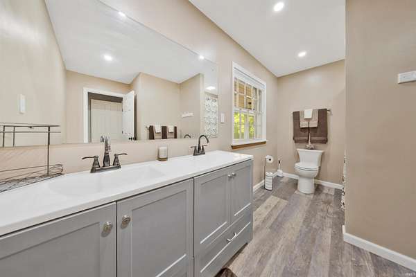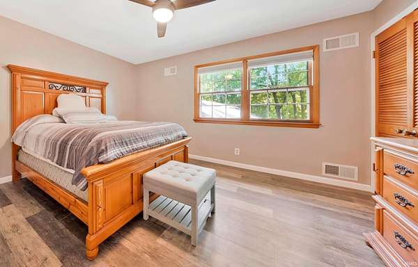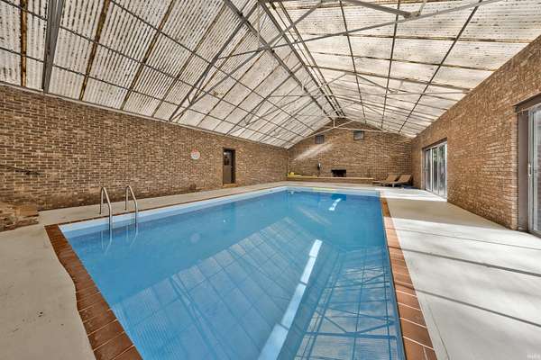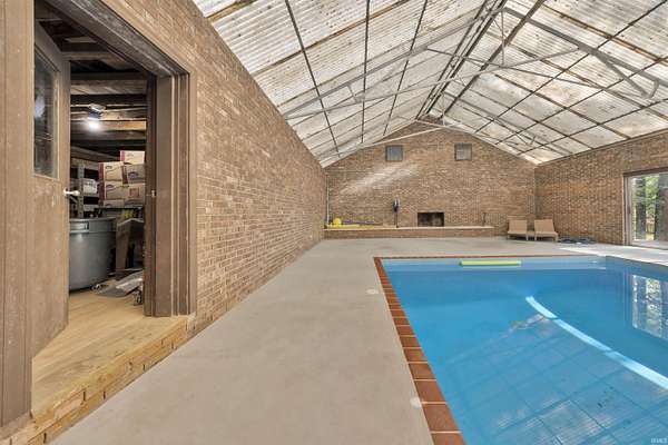 Stunning 2 Story with 3162sqft plus basement and Indoor Pool on 1.84 Acre Lake Lot! Beautifully updated with 4 bedrooms, 3 full baths, large eat-in kitchen, living room with fireplace, finished basement, pool enclosure, storage room, 2 car garage, and more! Newly remodeled kitchen offers breakfast bar island, granite counter tops, backsplash, large dining area, appliances stay, plus new french doors to pool area. Spacious living room with wood burning fireplace, large picture windows, new french door with access to covered porch that overlooks a private brick courtyard. Owner’s Suite includes all new bathroom with double sink vanity, plus a large walk-in closet, and additional sitting room. All bedrooms have new lighting, new shades, all new hallway bath with new vanity and shower. Pool is 18’ x 32’, pool enclosure is 1800sqft, with wood burning fireplace and plenty of room for entertaining! Original bath house was converted to storage room. Finished basement has open family room, side room, storage, and laundry. All 3 bathrooms are updated, LVP and fresh paint throughout, 5 Star alarm system, new roof (2020), tankless water heater (2019), new light fixtures. Exterior features: 2 storage sheds, back patio for grilling, entire yard has fencing around it, property corners are staked, mature trees, and a stocked lake!