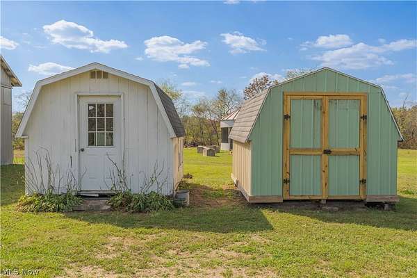 On five sprawling acres, this ranch-style manufactured home offers a unique blend of rustic charm and modern potential. Featuring three bedrooms and two bathrooms, this property is ideal for those looking to infuse their personal style into a comfortable living space. The home boasts updated operating systems from 2024, including a new HVAC system with central air, hot water heater, pressure tank, and enhanced attic insulation, ensuring efficiency and peace of mind. Outside, the expansive 40x100 barn and two additional sheds provide ample storage or workshop space. A distinctive grain bin gazebo adds character to the landscape, perfect for outdoor relaxation or entertainment. The property also includes a new metal roof, and durable metal siding, combing aesthetic appeal with low maintenance. This home presents a fantastic opportunity to add your finishing touches and create the rural retreat you've always dreamed of. With a propane furnace and a wood burner for a secondary heat source, comfort is guaranteed year-round. The kitchen comes complete with all appliances, high ceilings, and a luxurious wood-finished ceiling, enhancing the interior's appeal. Mineral rights are negotiable, adding potential value to this exceptional property.