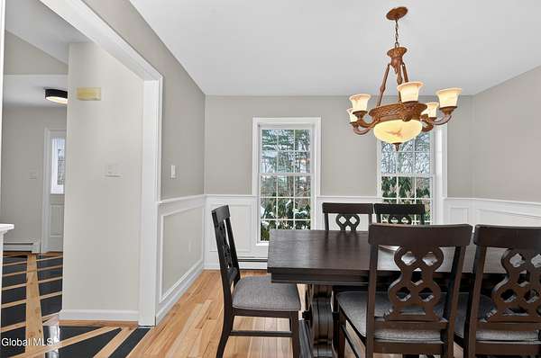 Est $2,432/moBeautifully refinished home! Large spacious kitchen with new to newer appliances. New 1/2 bath, new hardwood floors. Open bright foyer w/new tile hardwood inlay floors. New dining room w/raised panels. New luxury primary suite w/gorgeous tile bath + walk-in closet. 2 additional bedrooms + new full bath. New carpeting. Sliders to rear deck looking out on the picture perfect 1.4 acres with pergola and gardens and additional separate multi garage. New water softener 2023, 50yr roof 2020, furnace 2022, washer/dryer 2 yrs old.