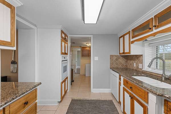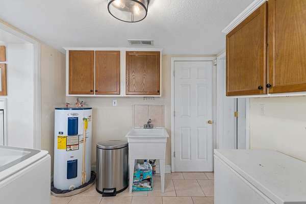 - Counters-Granite, Crown Molding, Solid Surface Counters, Speciality Ceiling, Tile Shower, Utility Sink