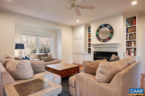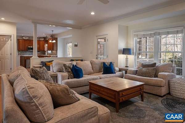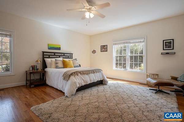 Set on a tranquil, level, 2+ acres, this beautiful light-filled home offers a fabulous front porch, large composite deck, and a wonderful screened porch overlooking a lovely fenced garden and large lawn meandering to a terrace with fire pit & views of a nearby pond. The inside boast gorgeous wood floors throughout the main level, 2 primary suites, one on the main level, and the 2nd upstairs with three more bedrooms & a 3rd full bath. The main level living space is open, flowing wonderfully from one area to the other, with an eat-in kitchen with granite counters and a new refrigerator & dishwasher, a warm family room with gas logs fireplace & built-ins, a spacious laundry room, & a two car attached garage. The walk-out basement offers a huge rec room, bonus room & full bath. This is the sort of rural neighborhood for which Albemarle County is known -- large homesites, mature trees, walkable, yet just moments from schools, shopping, and dining.