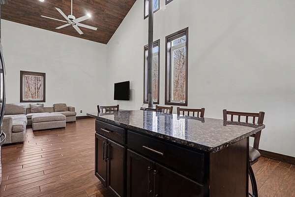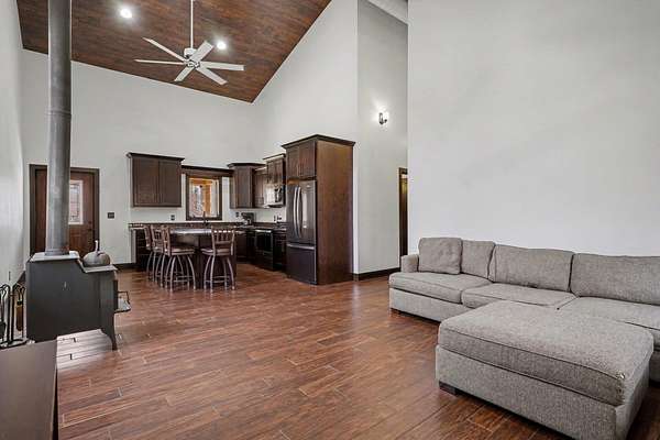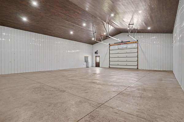 Looking for privacy, space, and a true retreat setting? This exceptional barndominium offers modern comfort and natural beauty on a stunning wooded parcel with pond and abundant wildlife. Inside, you'll find an open-concept floor plan highlighted by 14' walls and soaring 20' ceilings. The kitchen features granite, an oversized island, quality appliances, and oak cabinetry. Additional interior highlights include a spa-style bath, laundry, and porcelain plank flooring. The attached 24x32 insulated garage includes 12'x10' doors and a finished second-floor office/bonus space. A standout feature is the impressive 40x80 fully insulated and finished shop with industrial power, and HVAC--ideal for a home business, workshop, or hobby space. Conveniently located just 14 miles from South Haven and Lake Michigan's sandy beaches, and 21 miles to Kalamazoo, this property offers the perfect balance of privacy, and accessibility.