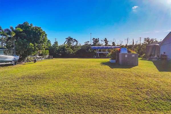 New 12,000Lb covered boat lift with composite dock, concrete seawall, and located on a cleared 80x125 lot! Don't buy a slip when you can have the combination of a perfect place to store your boat plus a vacant lot! If you prefer to build, water and electric have been installed at the current owner's expense and you can start plans to build your dream home! A 7x8 shed with a steel frame roof is included and can be removed or moved easily. The community of Gulf Cove offers quick access to the Myakka River, Charlotte Harbor, ICW and Gulf!