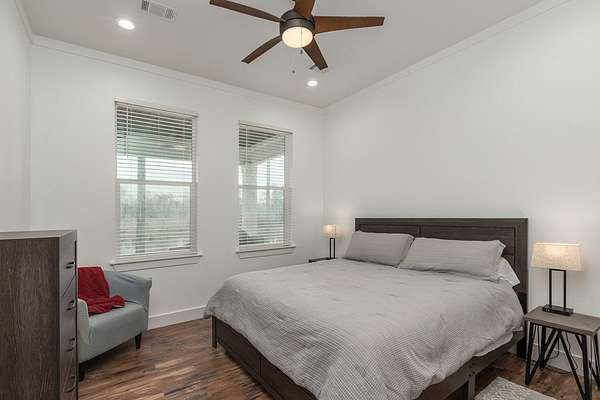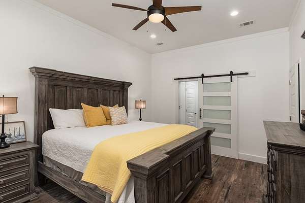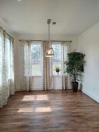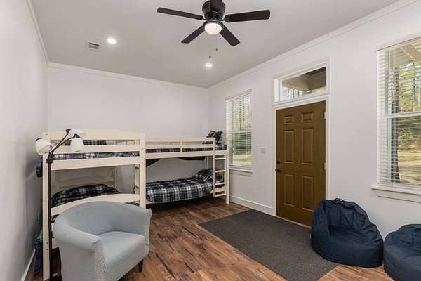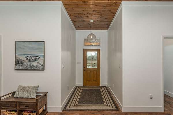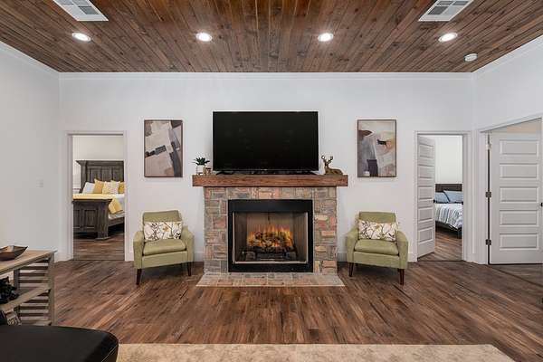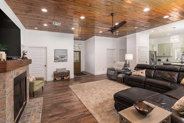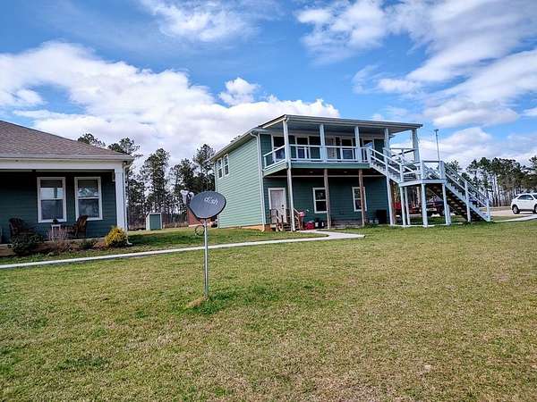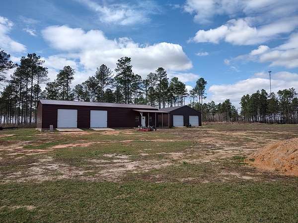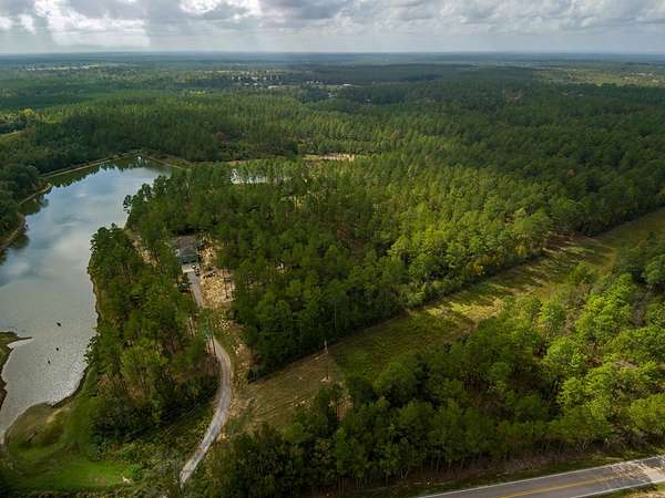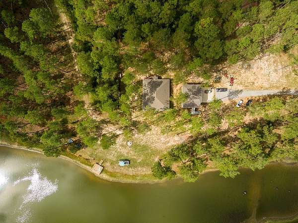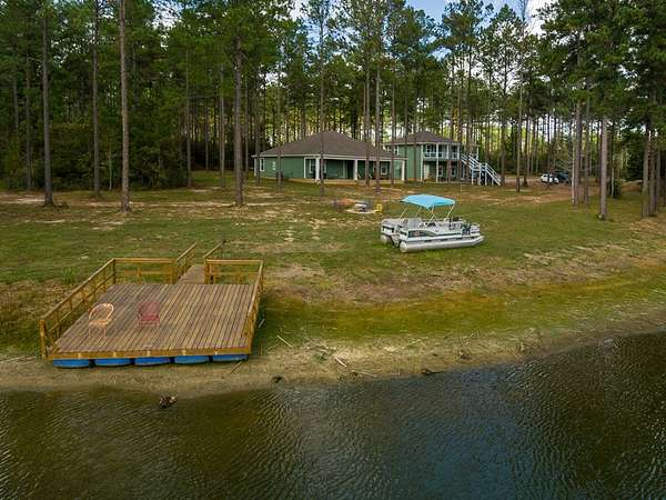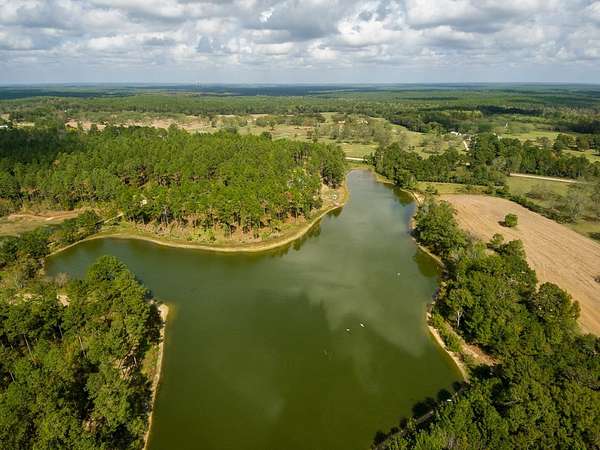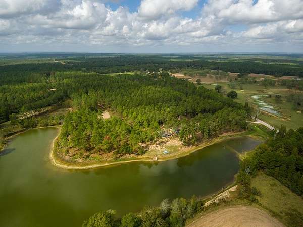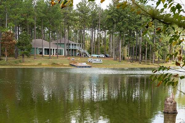 Experience a private country retreat with a winding paved driveway leading to your tranquil 23 acres, featuring a custom-built 4-bedroom, 2-bath home built in 2022 (2,305 sq. ft.) with a spacious 10x48 front porch. The property includes a 960 sq. ft. guest house (2 BR/1 BA) with a 10x32 porch, ideal for relaxation or accommodating guests. Enjoy a propane gas fireplace, 13 acre stocked fishing lake w/ bass & perch, pastureland, mature hardwoods, and planted pines. Wildlife is abundant, including deer, turkey, fox, hogs and coyotes. The home offers a welcoming foyer, 10' knotty pine ceilings, luxury vinyl plank flooring, an open living/dining layout, recessed lighting, pantry, granite countertops, stainless steel appliances, and large windows for natural light. The primary suite features double vanity, large shower, and a spacious walk-in closet. Additional amenities include a utility area for extra appliances, a 30x30 workshop, a 428' deep well (+ community water available) and an