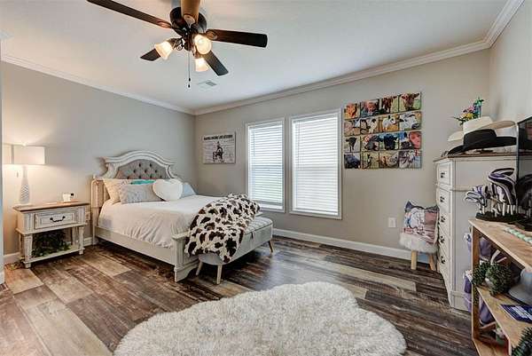 Outdoor highlights include: Excellent bass fishing in both ponds, A new dock and rock-lined creek with constant running water, Spacious in-ground storm shelter, High-speed fiber internet & TV, Aerobic septic system, An oversized Lean-To, fully fenced with quality grass--ideal for livestock. A unique XL "catio" off the back porch for your furry companions.