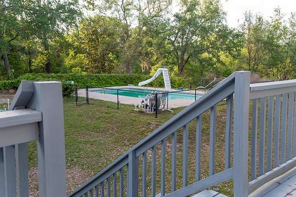 Est $1,571/moThis 3 bedroom, 2 bathroom home sits on 5.4 acres of land offering plenty of space. Inside, you will find an inviting layout with a spacious family room complete with custom built-ins, a comfortable den perfect for entertaining, and a formal living room. The kitchen and breakfast area feature beautiful hardwood flooring and connect to the formal dining room, which opens onto a screened porch. Outside, the fenced-in, saltwater pool and patio area create the perfect setting for relaxing. The detached two-story building adds flexibility, with the upper level offering a kitchenette and half bath. Property is being sold "as-is," and includes parcel numbers 0033 031A and 0033 031B.