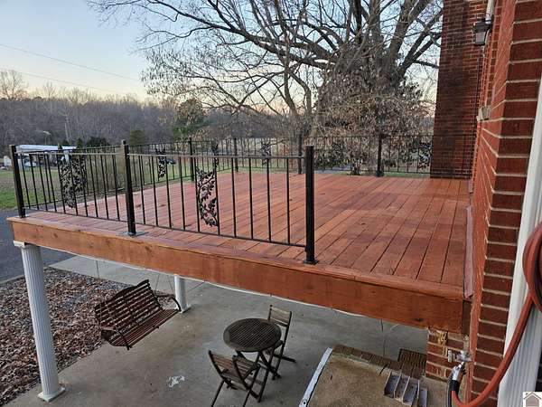 This property is a must see for anyone looking for space, privacy, and country living just minutes from Kentucky Lake. This move-in ready home sits on just over 30 wooded acres in North Marshall County, offering endless potential for family living, a weekend retreat, or a hunting getaway. The main level features 2 bedrooms and 2 baths, while the finished basement adds 2 more bedrooms, 1 bath, a full kitchen, and a large living area ideal for guests or in-laws. Outside, Enjoy peace of mind with a newly rebuilt, brand new deck two scenic ponds surrounded by mature trees and abundant wildlife. A large workshop with a second floor provides lots storage or room to finish additional space to suit your needs. There's also an additional area already equipped with plumbing, electrical, and septic perfect for adding another structure or guest home. If you've been searching for a private retreat with land, water, and a comfortable home close to the lake, this gem checks every box