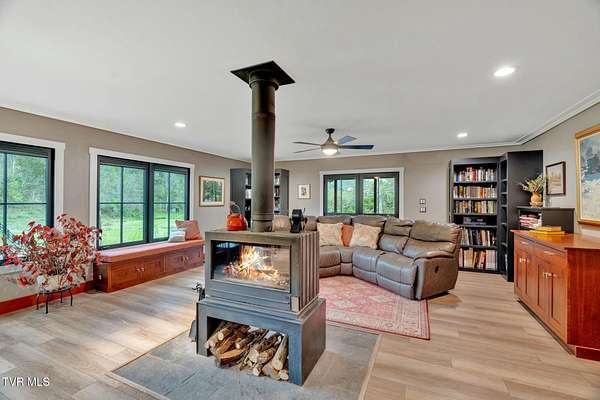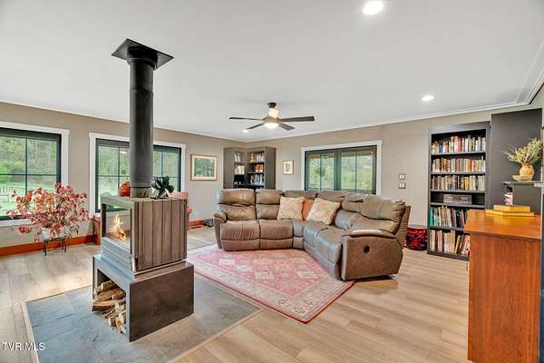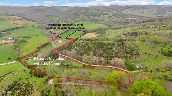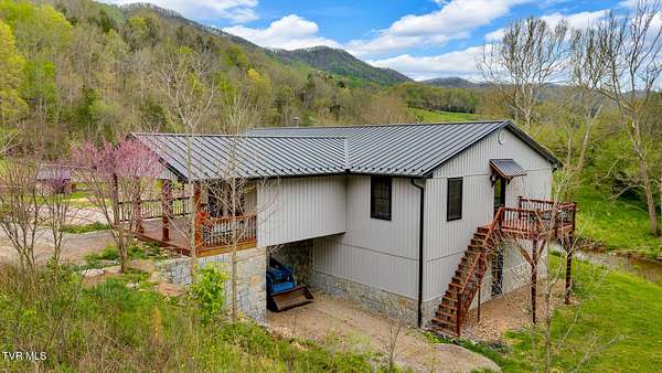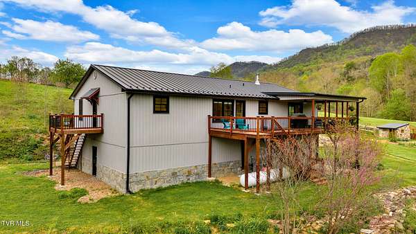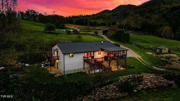 This custom-built home is a rare find and a true slice of Southwest Virginia paradise. Nestled in the quiet foothills of the Clinch Mountains along Big Moccasin Creek, this one-of-a-kind property offers 3 bedrooms, 3 full baths, 2,460 finished sq ft, and 2,160 unfinished sq ft ready for your personal touch. Set on 24.84 acres-with two optional parcels totaling an additional 8.39 acres also available-the property features 3 ponds, over 3,690 ft of road frontage, and a peaceful creek just steps from the back porch. Designed with equestrian living in mind, it includes a 2-stall barn with wash stall, heated/cooled tack room, hayloft, round pen, and scenic riding trails. A stone chicken coop/greenhouse, fenced garden, and winding hand-laid stone walls add to the property's charm. Outdoor living spaces include a half-covered back deck, welcoming front porch, and side porch. Inside, a double-sided wood stove warms both the living room and kitchen. The kitchen was fully renovated in 2021 with granite counters, custom Amish-built cabinetry, pull-out shelves, mixer lift, pantry, built-ins, new appliances, and a gas range. Other 2021 updates include a tankless water heater, UV light system for the well, water softener, metal roof, black-trim windows with sun shades, poplar trim, cedar awnings, and solid wood doors. The spacious primary suite includes porch access, a tiled walk-in shower, custom vanity, and walk-in closet. Additional updates include a gas furnace, replaced well pump, and washer/dryer, all of which convey. The seller also owns the land across the creek, accessible by tractor or horseback. While that section may hold water during heavy rains, the home itself has never flooded. According to FEMA, some portions of the property fall within Flood Zone A; however, the home is not in a flood zone and does not fall within any shaded areas on the flood map. For more details, please see the FEMA letter in the documents section or visit FEMA.gov to view official flood zone maps. This is a truly special property offering peace, privacy, and unmatched natural beauty-schedule your private showing today!