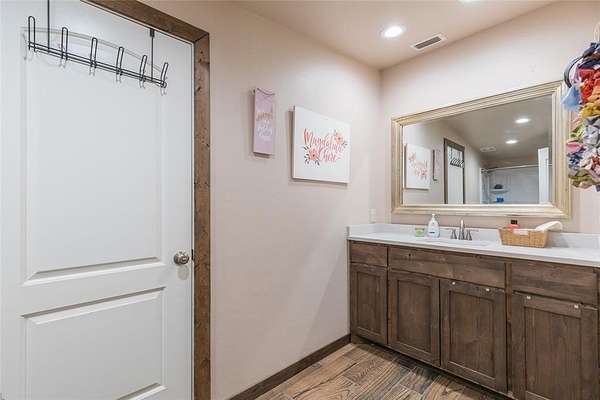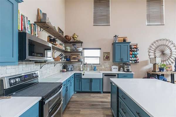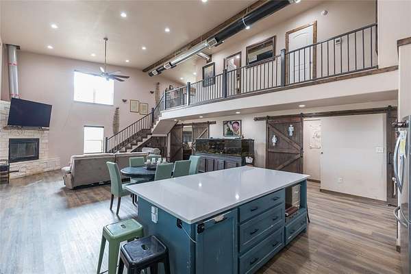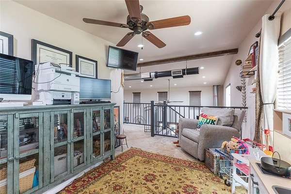 Do you have horses, cows, chickens and goats or do you just long to have horses, cows, chickens and goats? Well if you have them or that is your passion, then this is the property for you! This thoughtfully designed barndominium floor plan is a fantastic find within minutes of everything in Abilene. Country living on 10+ acres, this 3BR-2.5BA home features an open-concept living and kitchen area with custom cabinetry & wood burning fireplace. Split bedroom floor plan with spacious primary suite & ensuite bath on the first floor and the secondary bedrooms upstairs allow plenty of privacy for everyone. There is an additional half bath downstairs along with a second living space in the loft upstairs. This home is functional and a complete package for your family to move right in. Ample storage with a large laundry room and pantry and a true safe room are some additional features that make this one special. Exterior features include a covered front porch overlooking a tank & acreage, plus a covered breezeway connecting the house to the barn for convenience for feeding or taking care of livestock. There is ample space for outdoor living in any way that you can dream up. Large covered carport in the breezeway provides room for numerous vehicles, equipment & trailers; there is also a corral and plenty of storage and workshop space in the barn. A large tac room and feed room also house an additional half bath for outdoor convenience. Four roll up doors in the barn area allow for all types of parking ease. There is also RV hookup and parking. The property is fenced for horses and has a play area along with corrals, pens and grazing pasture for all of your animals. Located minutes from Abilene, with convenient access to everything on the South side of town, this one is the one you cannot afford to wait to see! Schedule a showing today with your favorite Realtor to see all this property has to offer. With views, convenience, acreage and a great home, what's not to love?