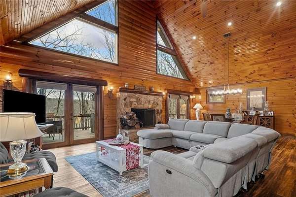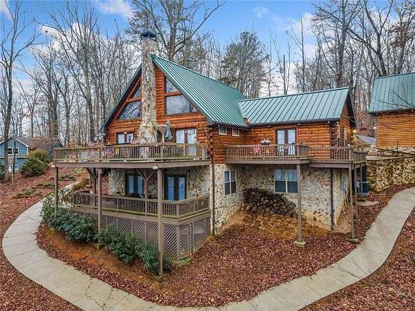 Amazing water views all year long, a private deep water dock, 1.61 acres with 166 feet of shoreline, and no HOA. This luxury custom built log cabin is the kind of Lake Lanier property buyers wait for. Positioned in the quieter north end of the lake, this retreat offers unobstructed lake views from nearly every room, a rare find thanks to the minimal tree line, along with water access you can enjoy in every season. Whether you are looking for a full time lake home, a weekend escape, or an income producing property, this one checks the boxes with short term rental potential and no rental restrictions. Inside, the layout is ideal for both everyday living and hosting, with two primary suites on the main level creating a great setup for multi generational living or guests, along with open living spaces, vaulted ceilings, exposed beams, and hardwood floors that deliver a true lake house feel. The chefs kitchen features Viking appliances, custom cabinetry, and a hammered copper farmhouse sink, all positioned to take in the views. A loft and finished basement provide flexible space for entertaining, additional sleeping areas, or a game room. Outdoor living shines with covered porches and expansive decks designed to maximize the setting, along with a newly built two story garage with plenty of room for boats, jet skis, golf carts, and all your lake toys, plus an easy path down to the dock. Priced below appraisal, this home offers immediate equity and a rare opportunity to own a standout Lake Lanier property with long term flexibility. Schedule your private tour today and come see what true lake living looks like.