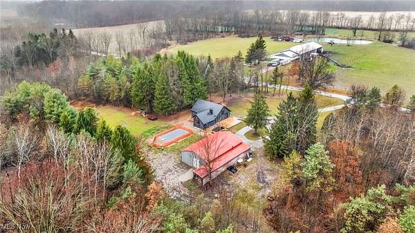 Looking for a home with land, a home with an outbuilding, or a property with acreage and a pool in Northeast Ohio? This New London retreat offers 10+ wooded acres with the ability to purchase an additional 6 acres, creating a rare opportunity for buyers searching for privacy, space, and outdoor living.Conveniently located close to Wellington. The home features a first-floor master bedroom, an in-ground pool, and a walkout lower level with a newly added 2025 bedroom-ideal for guests, multi-generational living, or a future in-law suite. Large windows, natural light, and a cozy fireplace create a warm main living area perfect for everyday comfort. property qualifies for CAUV tax program. Major 2025 updates include: New roof, New HVAC system, New flooring, and New bedroom added in the lower level. The property also includes a valuable multi-purpose outbuilding that can hold 3-4 cars, tractors, equipment, tools, or workshop projects-a top search feature for buyers wanting a home with a pole barn, home with a workshop, or property with storage space. A circular concrete driveway, attached garage, wooded acreage, a large cleared entertainment area, and modern utilities (public water, propane heat, central air) make this home an excellent fit for buyers seeking: Homes with land, Homes with outbuildings, Homes with privacy, Homes with pools, and Homes with wooded acreage. This property blends rural living with modern convenience and offers the space and features today's buyers are actively searching for.
