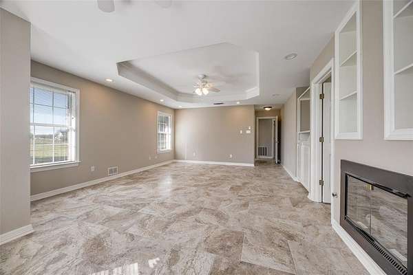 The spacious primary retreat is truly impressive, featuring a private sitting area with a warm, inviting fireplace and direct access to the covered back porch overlooking the scenic hillside. You’ll love the TWO oversized master closets, plus a spa-inspired ensuite complete with a relaxing jetted tub—perfect for unwinding at the end of the day. Safety is a priority with an underground tornado shelter conveniently located in the attached oversized two-car garage.