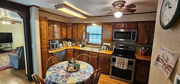 Come enjoy country life at its best; 1 hour east of Dallas, between Lake Ray Hubbard and Lake Tawakoni. Single-wide mobile home on 2 acres of land with many trees, detached 2-car carport, and 40x60 shop with electricity and water; being sold AS IS. Fully fenced, as well as cross-fenced for livestock. Shop has 2 bay doors and fits an RV; additionally, has a built-in room that could be for guests or a small apartment. This 1975 home is currently occupied but could use some updates. Currently cooled by window units installed throughout as heat pump compressor needs to be replaced for AC.