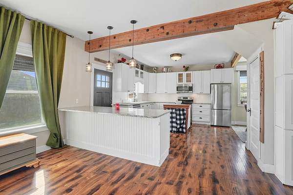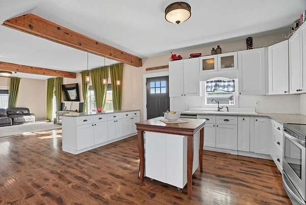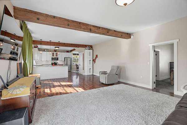 Welcome to this updated 3-bed, 3-bath home on 10 acres of private and secluded land. The home was updated in 2016 with a new roof, windows, flooring, and fixtures. You will love the open floor plan with rustic exposed beams and the chef's kitchen featuring granite counters and a vintage farm sink. The large main-floor primary bedroom is a private retreat with a walk-in closet and a bath featuring a claw-foot tub and separate shower. The utility of this property is unmatched, with a 3-car garage, a massive 36' x 60' Quonset shop (concrete floor), PLUS a 40' x 70' equipment barn. Enjoy the peaceful setting as the only home on a quiet dead-end road, complete with a greenhouse, bunk house, and productive well. This property delivers the ultimate combination of modern comfort, complete peace and superior utility.