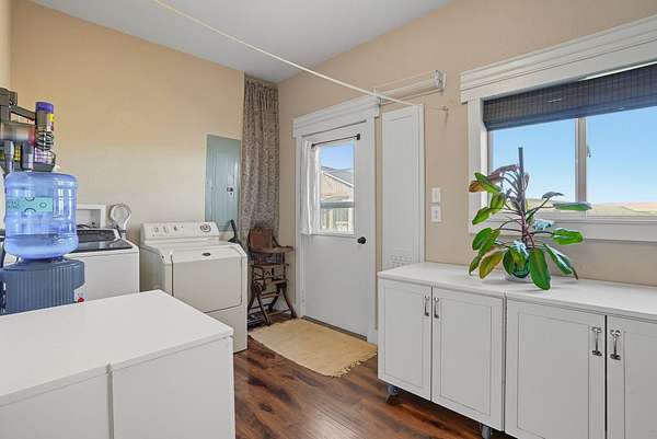 - Dishwasher, Dryer, Free-Standing Range, Hard Surface Counters, Microwave, Refrigerator, Washer