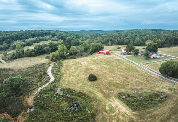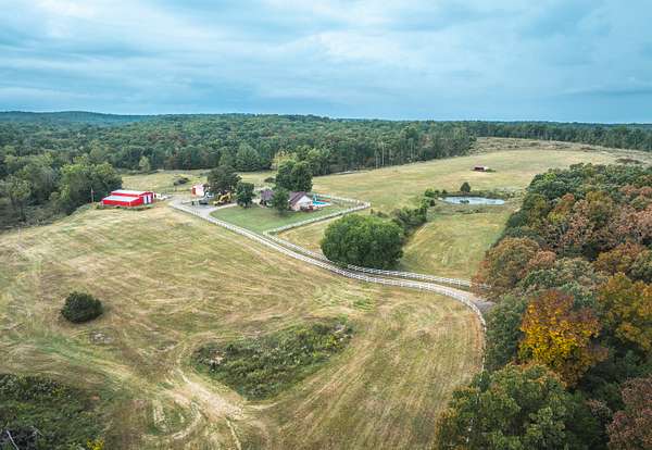 Discover 110 acres of rolling beauty in St. Francois County, featuring a perfect blend of pasture, woods, and panoramic views. This 3, 3-bath, 2,841 sq. ft. brick farmhouse offers plenty of space with a partially finished basement, making it ideal for family living or a country retreat. The property includes multiple barns suited for work, storage, or recreation, and a pond that adds charm and function. With 12 acres of open, farmable ground and 100 acres of mature woods, this land is perfect for a variety of uses--from raising livestock to enjoying premier hunting. Deer and turkey are abundant, and the wooded acreage provides endless opportunity for outdoor recreation. A steady breeze and wide-open views create the ideal setting for peaceful country living, while still being within reach of town conveniences.