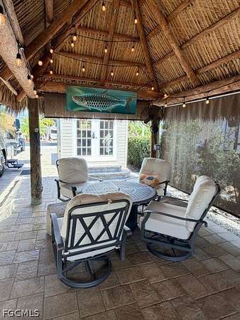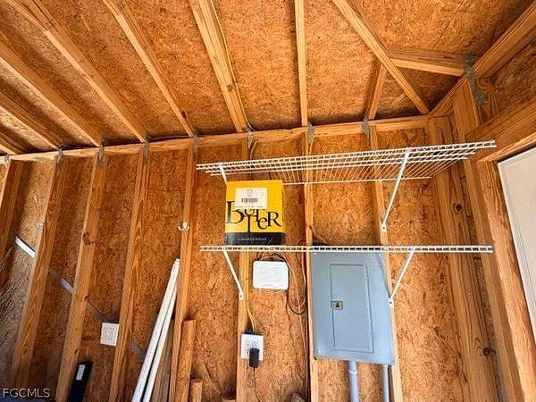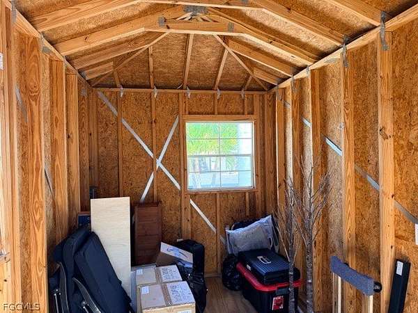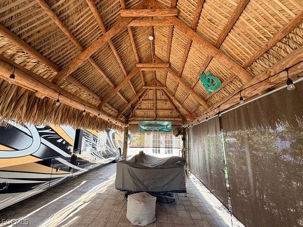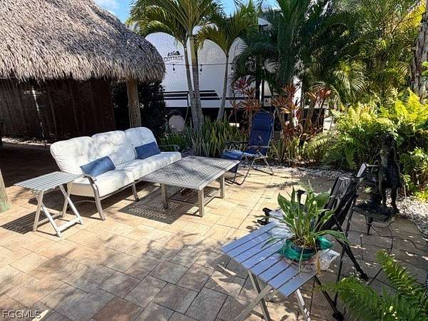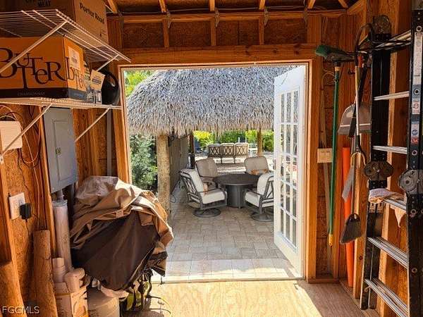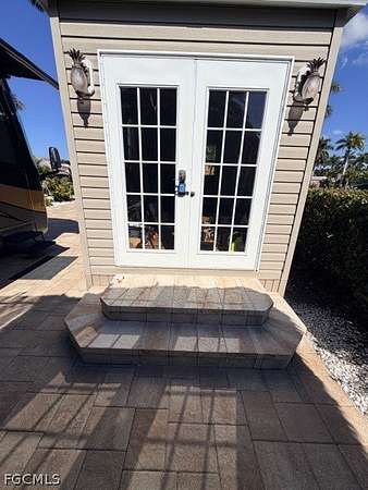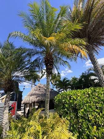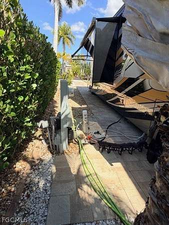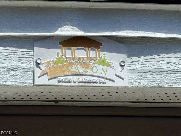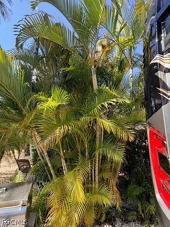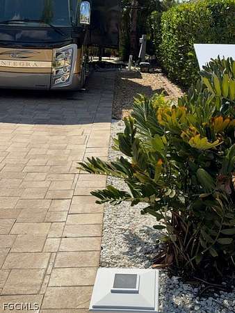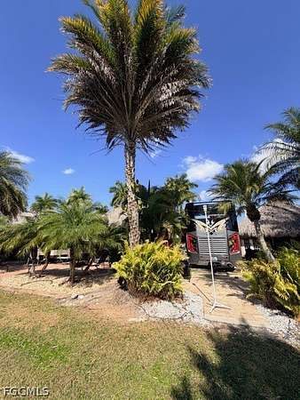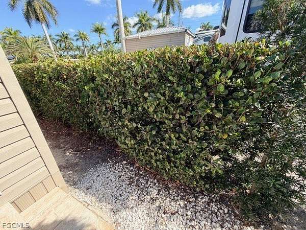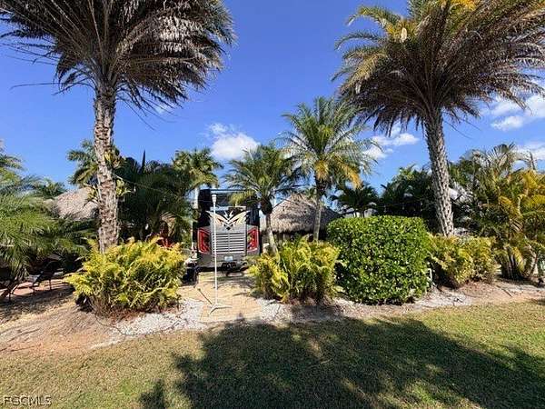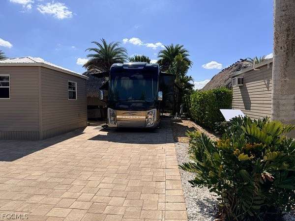 Lot 91 features a fully paved neutral colored north facing lot. North facing in Florida for many RVs is one of the most preferred positions. You can enjoy your 10 x 20' Tiki Hut with included crank down shades, numerous tiki lights throughout and a pole mounted fan for additional cooling under the Tiki Hut when needed. In 2021 Amazon placed an 8 x 15' unfinished shed which is of course ready for your personal ideas. The shed features a 100 amp breaker box which feeds electricity to your tiki hut. There are two large windows, multiple electrical outlets, an overhead light and twin pineapple style outdoor light fixtures. Fiber optic is already installed in the shed and the unfinished shed is ready for a future shower, toilet, and a sink as it has outside water and sewer pipes right up against the side of the shed. There is a double door entrance which allows easy access for furniture storage at end of season. On the property is a fantastic array of plantings outside and alongside the lot that includes manila Palms, rosemary date palms, giant sword, ferns tip plant, Sylvester palms, Areca palms. The landscaping includes a variety of seashells upfront and colored stone surrounding the perimeter. Very nice large open green space to the rear. This is a must see lot so stop in an experience the beauty.