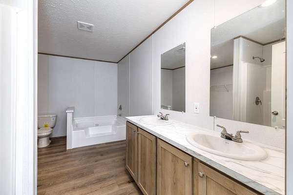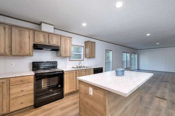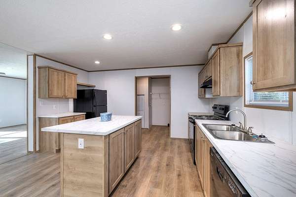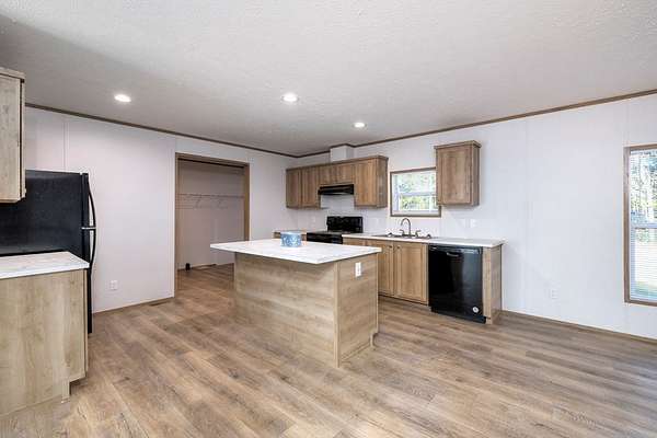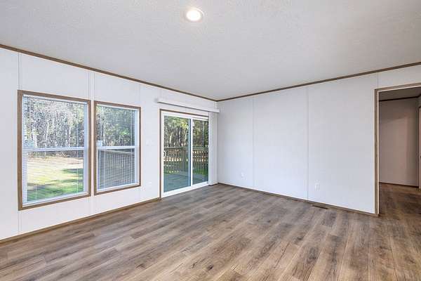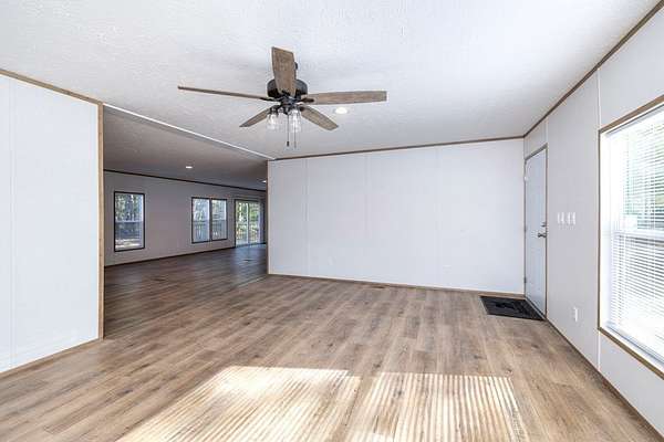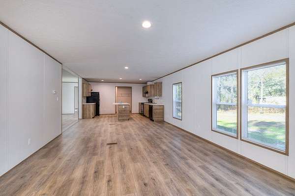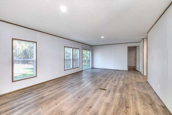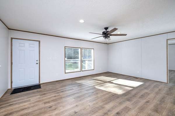 This beautiful and spacious 2025 model manufactured home sits on 1.502 acres. A large living room flows into a very roomy kitchen with a sizeable dining and family room attached. A great space for entertainment or just a quiet night at home. The primary bedroom has a very roomy primary bathroom attached with separate shower and bath tub and double vanity. The 3 spare bedrooms are on the opposite side of the home with the extra bath. Out to the back, you will find a little patio where you can enjoy you evenings with your favorite beverage and watch the wildlife. Grass seeds have been sown.