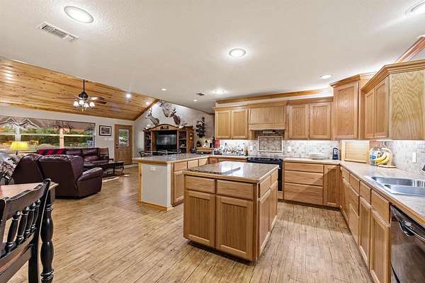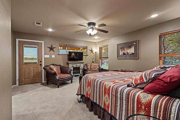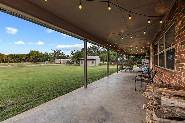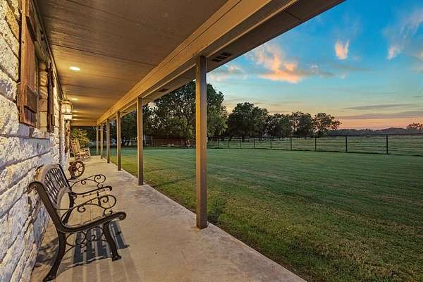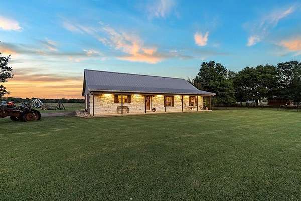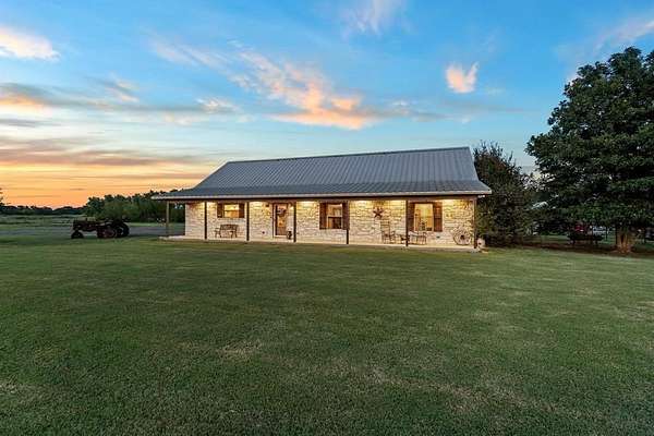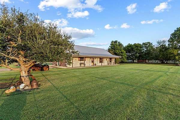 Welcome to 5285 County Road 3226 in Lone Oak, a ranch style home set on 9 acres with an agricultural exemption. Built in 2007, this residence showcases a brick and stone exterior, covered porches and metal roof. Inside, the home offers three bedrooms and two bathrooms with beautiful wood ceilings and a wood burning fireplace that creates a warm and rustic atmosphere. You'll love the primary suite and bathroom with large walk-in closet, dual sinks and separate shower and bath.