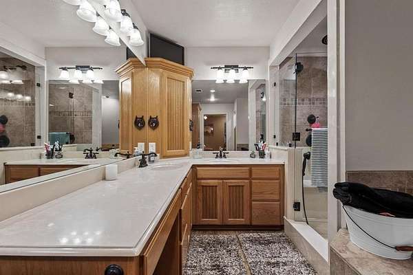 - Built-In Features, Chandelier, Decorative Lighting, Double Vanity, Eat-In Kitchen, Flat Screen Wiring, Kitchen Island, Natural Woodwork, Open Floorplan, Vaulted Ceiling(s), Wainscoting, Walk-In Closet(s)