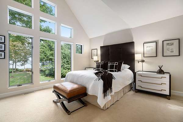 Summer is coming! Don't miss the opportunity! Your dream escape on Lake Michigan with 141 feet of private frontage, over 6200 sq. ft of finished living area on 3 floors.. Just forty steps to your own sandy beach paradise. Experience luxury living in this all-brick estate on 2.37 acres. Architecturally designed and built by the owner. With over 6200 sq ft, this gem features 4 bedrooms and 4 baths, (3 have zero step showers) on 3 levels. The full walkout lower-level leads to the beach and lush grounds. Luxury at its finest with three gas fireplaces, a spacious three-car garage, a private paved patio and entry, plus a cozy three-season porch off the den with a fireplace. Completely renovated 8 yrs ago, with a gourmet Wood Mode kitchen, pristinely landscaped and manicured grounds, and all the amenities you could imagine. The home has been built with aesthetic and function in mind. Soaring ceilings, balconies, a whole house sound system, generator, and ensuites.