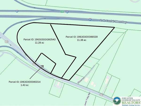 24.09 Acres . Zoned CI (Commercial/Industrial) An exceptional development opportunity awaits at the I-80/Route 115 Blakeslee Interchange. This 24.09-acre vacant parcel offers unmatched visibility and immediate access to I-80 east or west, making it ideal for a wide range of commercial and industrial uses. Key Highlights Strategic location: Directly off I-80 at the Route 115 exit, minutes from Pocono Raceway. High traffic exposure: Over 31,000 cars pass daily, ensuring maximum visibility. Level topography: Easy site preparation with direct views from I-80. Flexible zoning: CI designation allows for hotel/motel, warehouse, truck stop, trucking terminal, home center, strip mall, outlet mall, and more. Nearby attractions: Pocono Raceway, Split Rock, and Jack Frost Resorts drive steady regional traffic and growth.