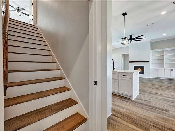 - Bookcases, Breakfast Bar, Ceiling Fan(s), Kitchen Island, Open Floorplan, Primary-Lower Level, Split Bedrooms