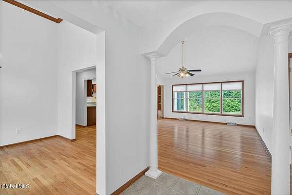 - Cathedral Ceiling(s), Ceramic Tile Bath, Chair Rail, Crown Molding, Eat-In Kitchen, Paddle Fan, Walk-In Closet(s)