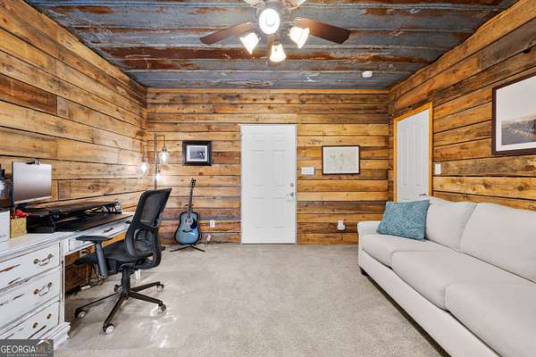4 bedrooms | 3.5 baths | 4,198 sq ft | 2.29 private acres | No HOA | Finished basement apartment | Whitewater schools | Roof 2023 | 2 minutes to Hwy 92 Some homes stop you before you even get to the front door. At 529 Inman Road, that moment happens the second you turn off the main road and follow the long private driveway through the trees. The house sits almost completely hidden from the street on 2.29 acres in South Fayette, framed by tall pines and wrapped in the kind of quiet that is genuinely hard to find this close to everything. The curb appeal delivers on the promise. A full-width rocking chair front porch with string lights and a ceiling fan stretches across the entire front of this classic Cape Cod, with board and batten siding, dormer windows, and a roof replaced in 2023. It is the kind of front porch you actually use. Inside, over 4,100 square feet of thoughtfully laid out living space gives every member of the household room to spread out. The main level features a generous family room anchored by a stunning stone fireplace surround, with crown molding, a ceiling fan, and multiple windows that look out to the trees. The primary suite is on the main level, with a soaking tub, separate shower, dual vanities, and a large walk-in closet. The kitchen is well sized with solid surface counters, a breakfast bar, stainless appliances, and a breakfast nook with a window overlooking the backyard. A separate formal dining room rounds out the main level. Upstairs, one of the bedrooms opens directly into a large adjoining flex space with its own closet and full bathroom access. Use it as a sitting room, playroom, nursery, or close it off with a simple addition to create a fifth bedroom. The layout gives you genuine flexibility without a renovation project. The fully finished basement is one of the most versatile features of this home. With its own private exterior entrance, separate driveway, bedroom, full bathroom, and wet bar, it functions as a completely independent living space. Whether you need room for extended family, a returning college student, a home office, or a rental situation, it is already done and ready to go. Out back, a large covered patio with a ceiling fan and string lights is perfect for outdoor dining in every season. A flagstone path leads to the stone fire pit patio surrounded by trees on three sides, with seating for a crowd. The fenced backyard gives you privacy without closing in the space. No HOA. Zoned for Inman Elementary, Whitewater Middle, and Whitewater High School, with the elementary school just two minutes away. Hwy 92 is two minutes from your driveway. Kroger, Publix, and the Fayetteville courthouse square are ten minutes away. Trilith is eighteen minutes down the road. The major systems are in good shape, with a roof replaced in 2023 and the main HVAC unit updated in 2020. This home has been well maintained and is ready for its next chapter. This is the one people move to Fayette County for.