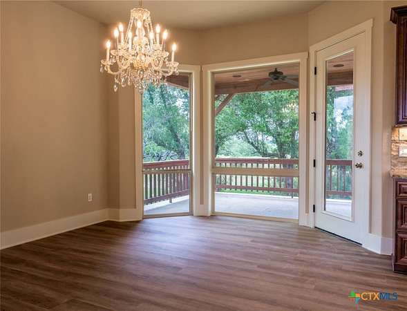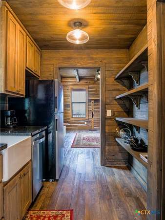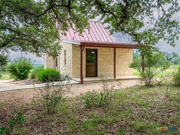Welcome to your serene retreat in a gated community! This exquisite 2-bedroom, 2.5-bath custom home boasts a study and a loft, offering ample space for both relaxation and productivity. Nestled on 6.25 acres, you'll enjoy breathtaking views and the charm of exotic wildlife roaming freely in your own backyard. The heart of this home features an open-concept living area that seamlessly connects to a gourmet kitchen, perfect for entertaining. The spacious primary suite is a private haven, complete with an en-suite bath w/jacuzzi tub &walk in shower, a sitting area w/fireplace, a private screen porch directly off the bedroom, & a massive master closet. The additional bedroom offers comfort and versatility, and gives room for guests in the main house. Step outside to discover an incredibly charming 1-bedroom, 1-bath guest house, complete w/a full kitchen, & a full bath w/ a walk-in shower-ideal for visitors or as an additional private space. The property also features a 36,000 gallon rainwater collection system as well as a 35GPM well, ensuring sustainability while minimizing your environmental footprint. For hobbyists or those needing extra storage, the 3-car garage doubles as a workshop, and the upstairs game room provides the perfect setting for leisure activities. While you'll feel miles away from it all, this home is conveniently located close to town, offering the best of both worlds: tranquility and accessibility. Don't miss this rare opportunity to own a piece of Hill Country paradise!
