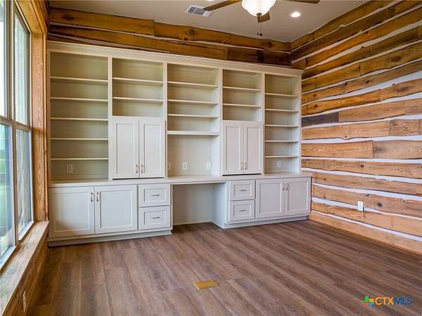 - Beamed Ceilings, Bookcases, Breakfast Bar, Built In Features, Ceiling Fans, Chandelier, Double Vanity, High Ceilings, Home Office, Jetted Tub, Main Level Primary, Multiple Dining Areas, Multiple Living Areas, Open Floorplan, Primary Downstairs, Recessed Lighting, Separate Formal Dining Room, Sitting Area In Primary, Split Bedrooms, Vaulted Ceilings