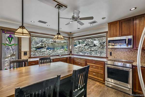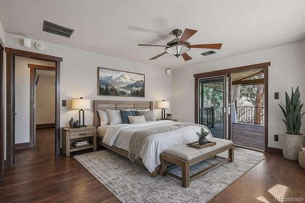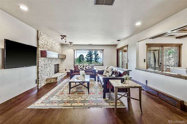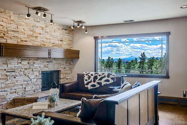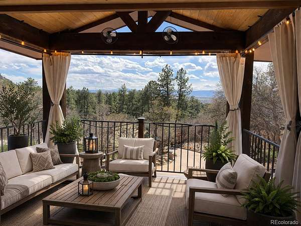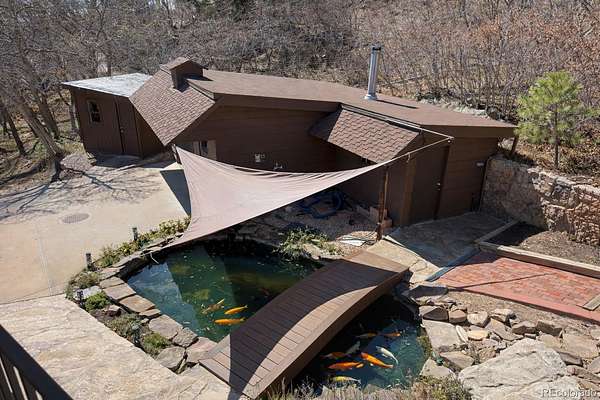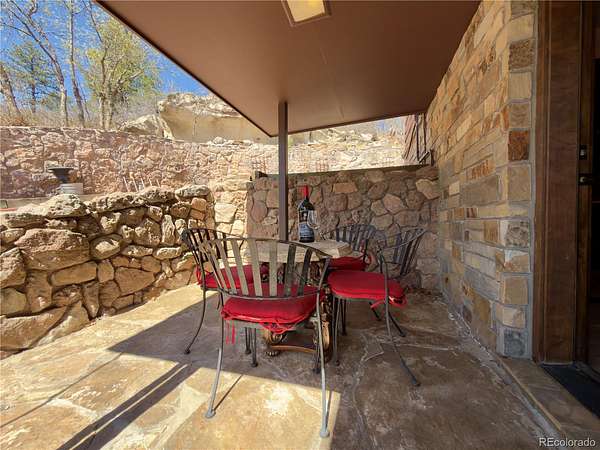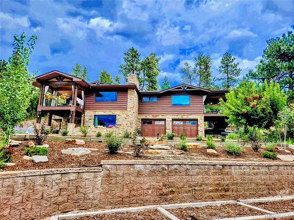 - •OPEN HOUSE THIS EVENING, FRIDAY THE 10TH FROM 6:00 PM TO 7:00 PM—BE THE FIRST TO SEE IT!•• Extensively remodeled raised ranch set on 2 secluded, wooded acres with breathtaking views of Pikes Peak and the front range, all framed by dramatic rock outcroppings. The sellers invested over $430,000 into the exterior and interior to create a stunning mountain-contemporary design, seamlessly blending with the low-maintenance xeriscape. Nearly 1 acre is fully fenced in to allow free-roaming of your pets. Upon entry, you’re greeted by a custom wine cellar secured by a wrought-iron gate and highlighted by an underlit, onyx countertop and liquor shelves, perfect for showcasing your collection. The lower level features a spacious great room ideal for movies, a pool table, and entertaining, along with a full bath and mud room with abundant storage. The oversized garage is appointed with abundant stainless cabinets, a full sized refrigerator and a dedicated dog wash with warm water. The main level is where this home truly shines. The open floor plan is anchored by a gourmet kitchen looking out to a rock waterfall. The kitchen flows into the formal dining and family rooms, which open to a covered deck you’ll never want to leave. Two guest rooms include a perfect study featuring a custom-built Murphy bed. The primary suite is a private retreat with its own covered deck with fenced dog run, and an updated bathroom. Nearly every window in the home captures some of the most captivating views Colorado has to offer. Step outside to a wine patio and relax to the sound of a stream that flows into a tranquil koi pond. A gated drive leads past a large shed, a four-season chicken coop, and a 420 sq/ft finished flex space perfect for entertaining, a workshop (wired with 240v), or vehicles. This is a one-of-a-kind Colorado retreat. Some photos have been virtually staged. While helpful for visualization, they do not fully capture the true beauty of the property.