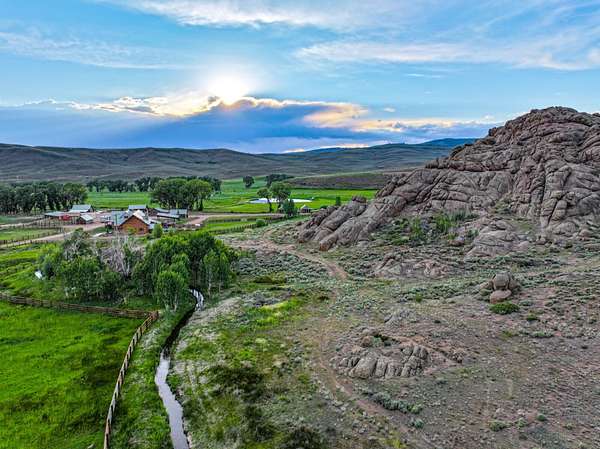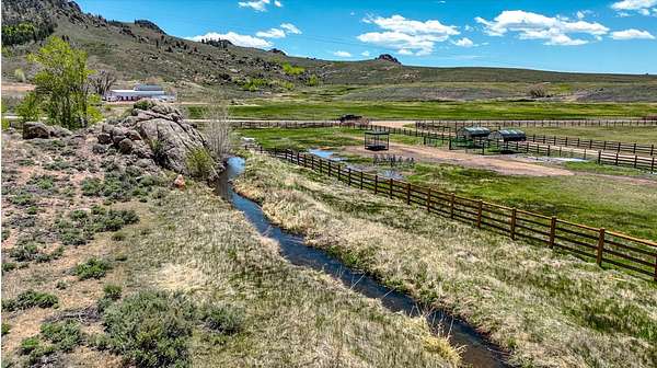Quartz Creek transverses the property for .75+- miles and is complemented by a private trout lake, offering the opportunity to catch Brown and Rainbow trout. The setting is quiet, the views are uninterrupted, and the live water features add measurable value. More than 100+- acres of irrigated ground suitable for hay production or grazing.