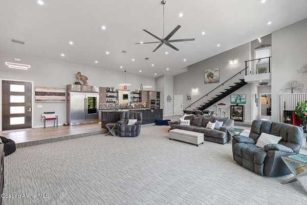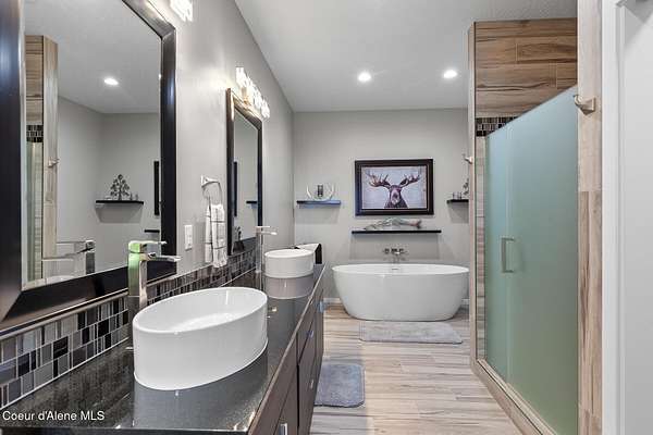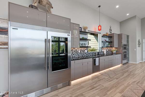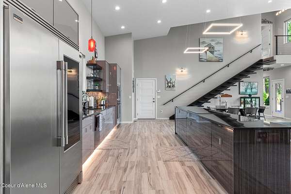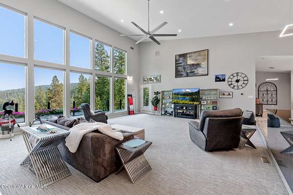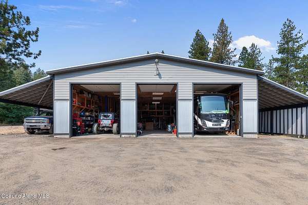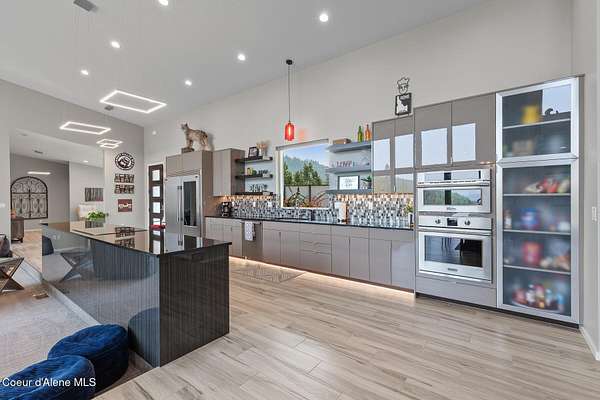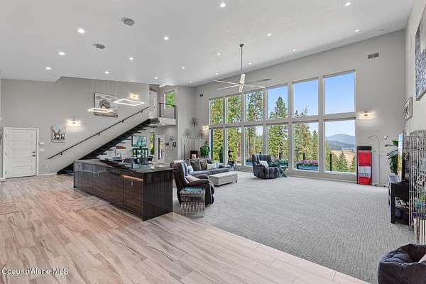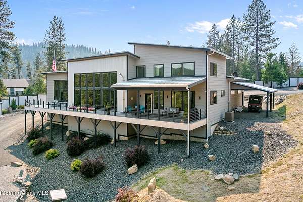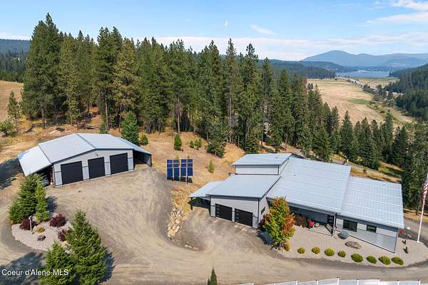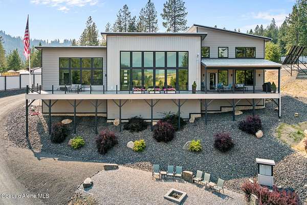 Jaw dropping views, MODERN MASTERPIECE and a home with no detail left behind! This Cougar Gulch stunner is the perfect blend of modern and serene. Tucked in the pines with spectacular views of Lake Coeur d'Alene and a short 10 minutes to restaurants, shops, nightlife and all that downtown Coeur d'Alene has to offer. This 3 bedroom, 2 bathroom home features an expansive great room with a floor to ceiling glass wall to capture the stunning views. High end appliances with induction range and a floor plan that seamlessly transitions from one room to another. The impressive 50x50 shop features a car lift and 2500 sq ft of covered parking with a 30 amp RV hookup. The private gated entrance welcomes you to your own slice of paradise. Too many features to list!