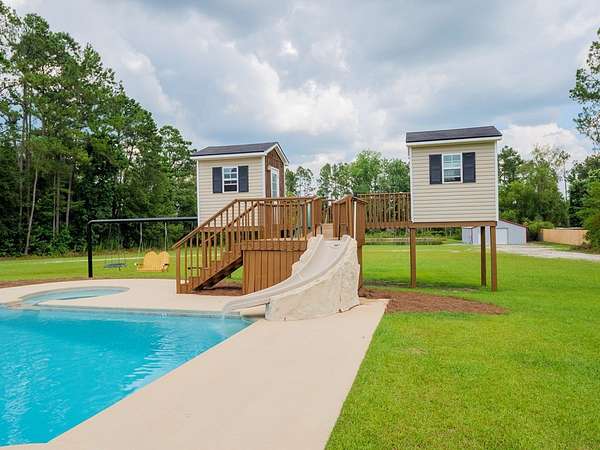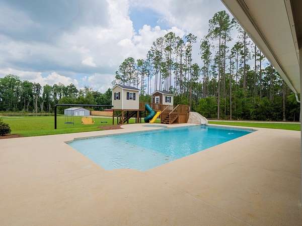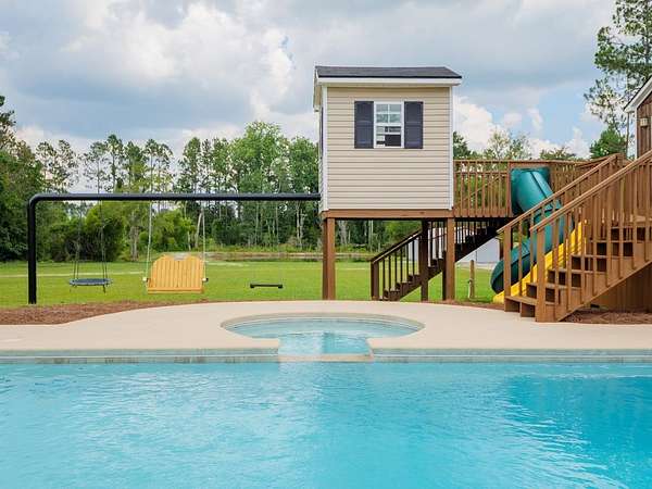 Welcome to this beautifully updated 5 bedroom, 3 bathroom home situated on 6 acres in Hahira, GA! This home features brand-new engineered hardwood flooring, new carpet in the bedrooms, fresh interior paint throughout, and all-new granite countertops. The bonus room offers flexibility for an office, playroom or guest space. Outside, enjoy your own private retreat complete with a pond, in-ground pool, and a charming playhouse with a water slide perfect for kids or entertaining. A large powered shop just under 1900 square feet provides ideal space for hobbies, storage, or business needs. The property also includes an irrigation system and audio system for added convenience and enjoyment. Located in the quiet countryside of Hahira, this one-of-a-kind property combines comfort, functionality, and fun all with just a short drive from town and I-75. Call to schedule your showing today!
