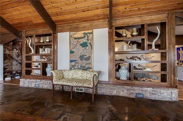 5 plus acres 1970's mid-century modern prairie style 1 story estate home, totally remodeled, new roof, pool, HVAC, plumbing. 7878 living SF;(6571 H/C SF) a 36' long screened in porch, 11x22 covered flagstone patio off the mother-in-law suite and a front 700 sf flagstone covered patio with the vest view around! 5 large bedrooms, 4 full & one-half baths. Flagstone, oak wood and heated marble floors. wood, beamed, vaulted tongue & groove ceilings with redwood beams made in Washington state and shipped by train to Springdale. Sunken conversation pit in front of the fireplace with 14' cedar mantle. Custom Built-ins. Soft close drawers, brass hardware, wood pocket doors, custom 46' walnut front door. Lots of storage. Butler's pantry with 2nd fridge, warming drawer & Sonic ice machine. Heated pool with hot tub & auto closing cover. This is a quality, trophy property with a north facing view and on a clear day, you can see Madison & Carrol County to the east & Centerton to the west. Freshly paved private, gated driveway.