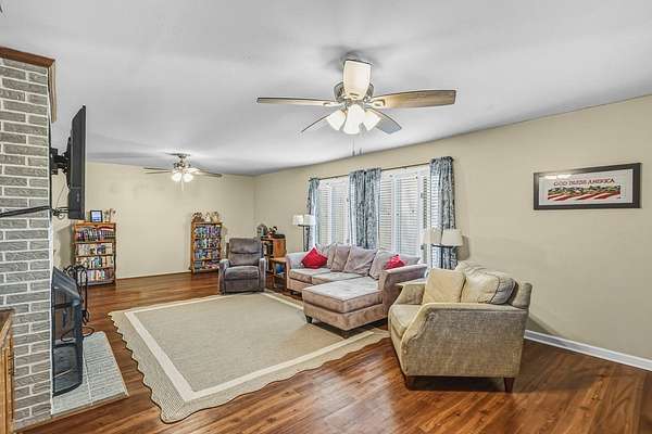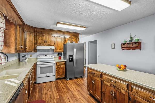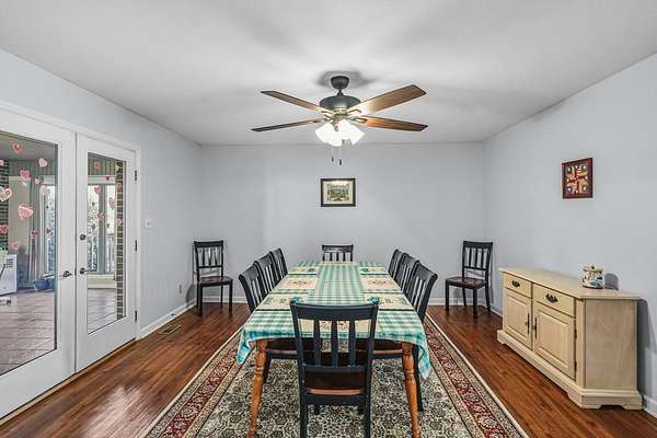 Set on 5 acres in a quiet, small town setting, this property offers privacy, space, and plenty of room to make it your own. With lots of fencing, a two story barn/ outbuilding (with electricity), the land is well suited for animals, equipment, hobbies, or extra storage. There's also a designated area ready for a garden, along with peach, pear, apple and crabapple trees! The home offers approximately 2,400 square feet and a comfortable, functional layout. On the main level, you'll find a spacious living room, dining area, kitchen, sunroom, and a half bath. The primary bedroom is also on the main level and includes a full bathroom along with his and hers closets. Upstairs are three additional bedrooms, all with good closet space, along with another full bathroom. The property, approximately 30 minutes from Greenwood and about 10 minutes from Lake Russell, provides privacy and space while still being within a reasonable drive of town. Reach out if you're interested in setting up a showing.