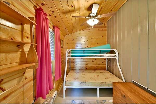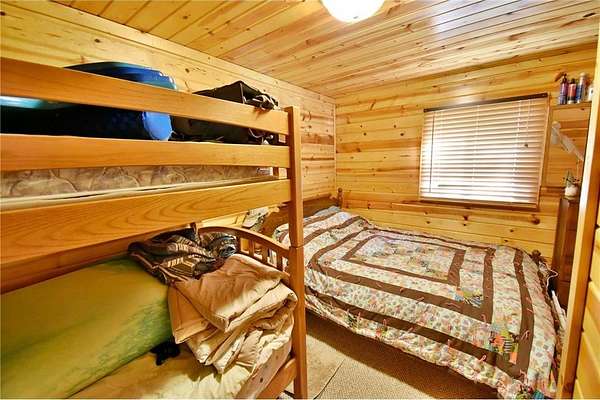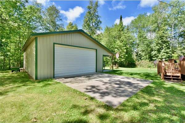 24x40 detached garage/shop with overhead storage concrete floor, and 10 foot side walls with two additional bunk rooms off the side. - plenty of room for toys, tools, and lake gear.