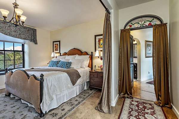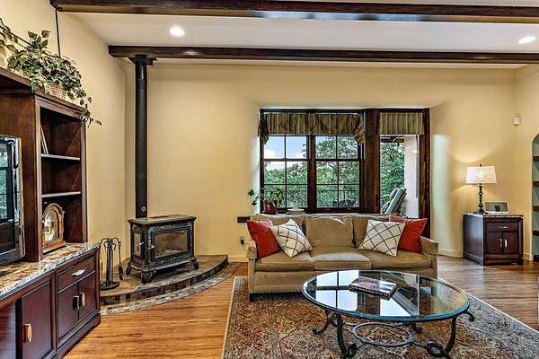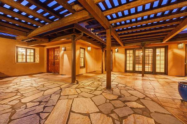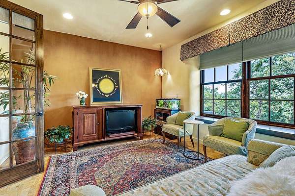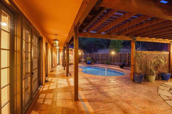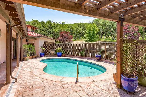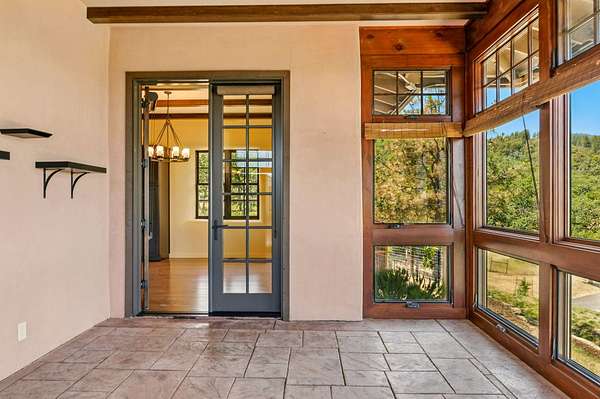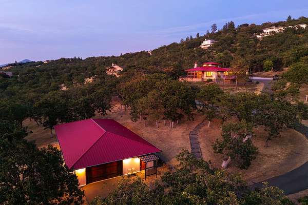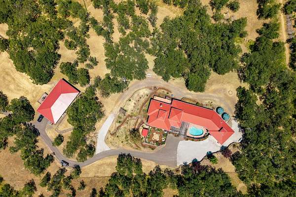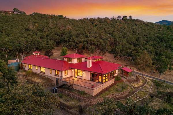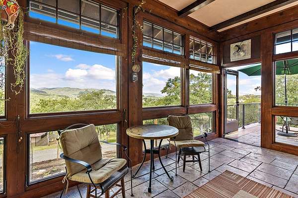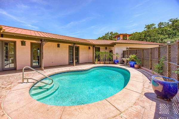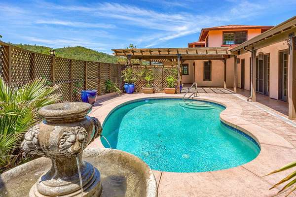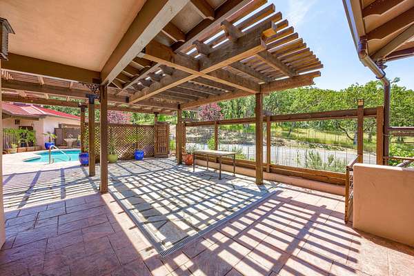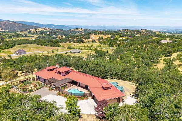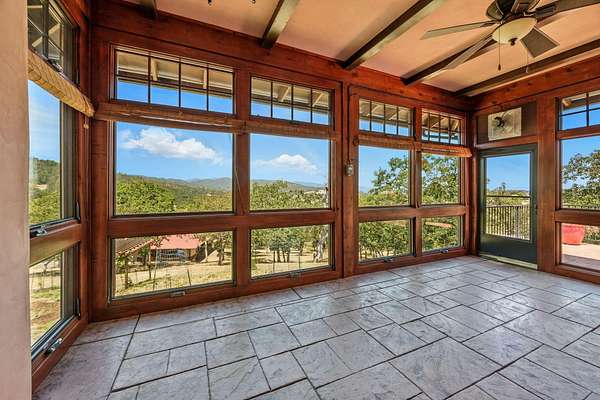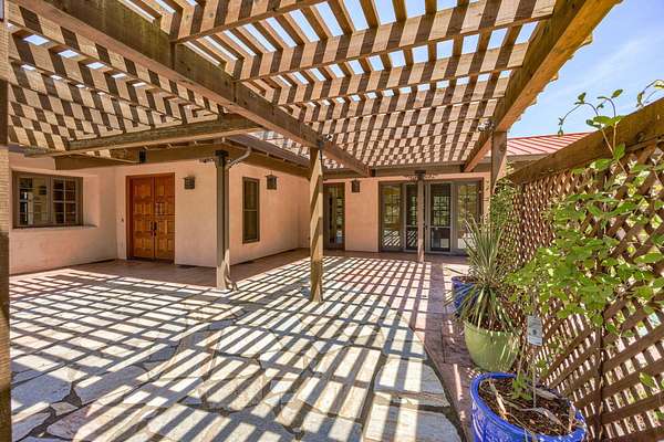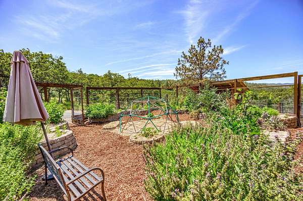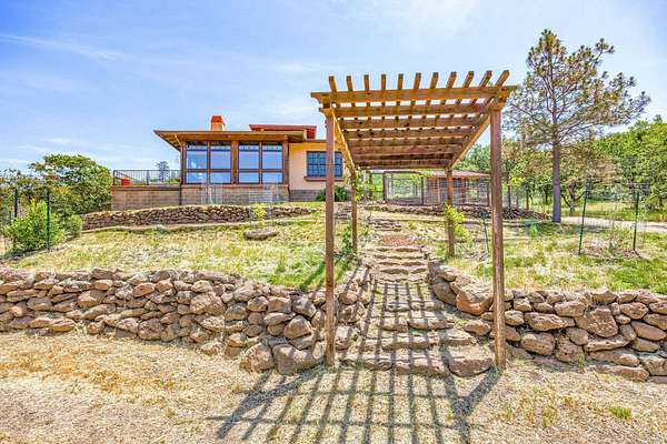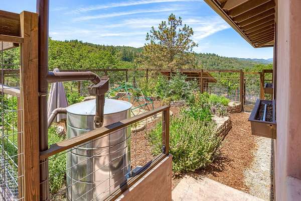 Custom Strawbale-insulated serene spa-like living w/stunning views. Paved drive w/elec gate opens to 6.62 fncd acres w/organic garden. Stucco ext w/fenced courtyard, flagstone walkways, heated saltwater pool, palm trees, window boxes & nite lighting. Wood-clad alum windows. Cupolas w/elec windows. Finished 2 car garage plumbed for bathroom. Stunning interior bamboo and cork floors, great room w/10' beamed ceiling & soapstone wdstv. 8' French doors lead from dining room to sunroom which opens to patio. Open kitchen has 5 burner cooktop, dbl conv ovens, coffee bar, granite counters & cherry cabinets. Mstr suite opens to courtyard, dbl sinks, claw foot tub, glass shower & tiled floors. Guest ste & 3rd bedroom/den leading to courtyard. Upstairs 230 sf office w/360˚ views. 1200 sf insul out-bldg wired for 220, HVAC, full bath, mini kitchen, professional recording studio or home theater, 300 sf deck w/valley views & 1000 sf carport. Irrigated w/10,000-gallon rainwater catchment.