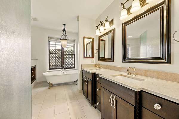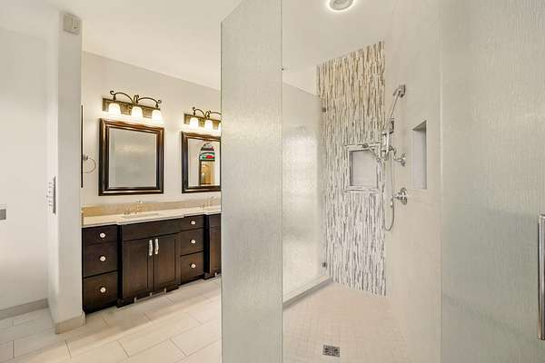 - Breakfast Bar, Built-In Features, Double Vanity, Granite Counters, Linen Closet, Open Floorplan, Soaking Tub, Solid Surface Counters, Tile Counters, Tile Shower, Vaulted Ceiling(s), Walk-In Closet(s), Wired For Data