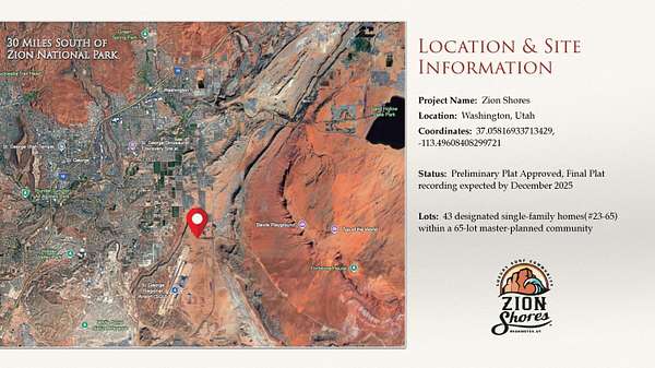Welcome to Zion Shores--Southern Utah's most groundbreaking new subdivision, where luxury living meets next-level recreation. Centered around a stunning 9-acre crystal-clear lagoon, this one-of-a-kind community features state-of-the-art surf technology that brings ocean-style waves right to the desert. Whether you're catching a morning set, paddleboarding at sunset, or simply soaking in the beach-like atmosphere, Zion Shores delivers an unmatched lifestyle experience. Thoughtfully designed with scenic beauty in mind, the community offers breathtaking views, pristine surroundings, and a resort-style ambiance just minutes from world-class hiking, golf, dining, and retail. At the heart of Zion Shores are the exceptional custom homes built by Immaculate Homes, known for their superior craftsmanship, innovative design, and luxury finishes. Each residence is carefully curated to complement the natural surroundings while offering modern elegance, open-concept living, and high-end amenities throughout. From expansive indoor-outdoor spaces to designer kitchens and spa-inspired primary suites, every detail is elevated. Whether you're seeking a full-time residence, second home, or investment opportunity, Zion Shores represents a rare chance to own in one of the most exciting and visionary communities in the region.
