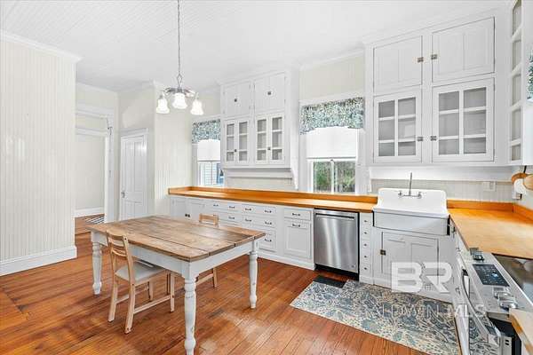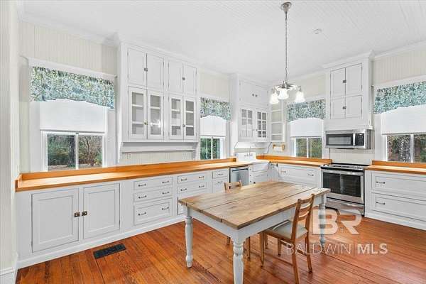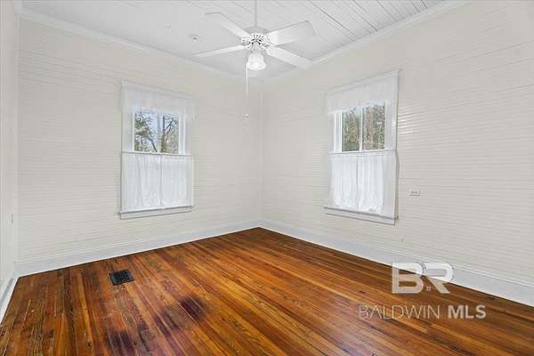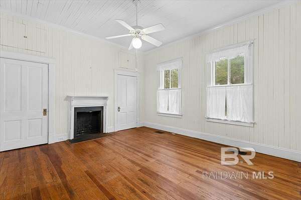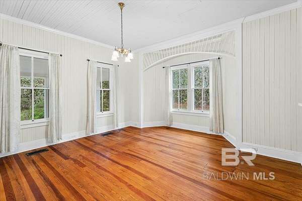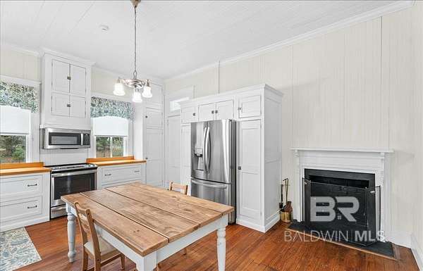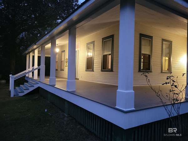 Step onto the wide wrap-around porch and feel the gentle rhythm of a Southern home that's been telling its story since 1911. This historic beauty stands tall with soaring ceilings, original Pine floors, and a personality all its own - gracious and unapologetically charming. Inside, sunlight filters through the large windows highlighting classic crown molding, tall baseboards, a beautiful stain glass window and transoms that whisper of a bygone era. Four coal fireplaces (not in use) anchor the home with character and history, while every room invites you to slow down and stay awhile. Lovingly maintained, the home offers peace of mind with a metal roof, storm windows, a tankless water heater, and new appliances - modern comforts seamlessly blended into historic charm.Set on nearly two acres, the grounds are a true Southern garden thoughtfully landscaped with native plantings including Bartram primrose, gardenias, big-leaf magnolia, redbuds, and a graceful titi tree. It's a setting made for morning coffee on the large front porch, long conversations at dusk outback, and seasons down by the small creek enjoyed at a gentler pace. This is more than a house; it's a soulful Southern home rich in history, wrapped in beauty, and ready to welcome its next chapter. Schedule a tour today! Buyer to verify all information during due diligence.