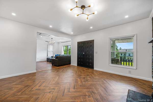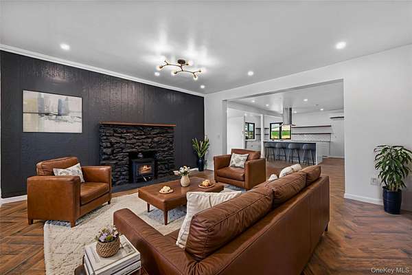 Located in the Marlboro School District, this 3-bedroom, 2-bathroom ranch-style property offers the perfect blend of convenience, comfort, and potential. From the inviting stone-front porch, step inside to find a spacious open floor plan of over 2,000 square feet on a single level. The main living area is highlighted by a cozy black stone fireplace, a stylish accent wall, and herringbone-pattern wood floors that add warmth and character.
