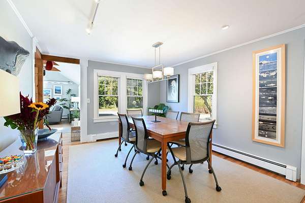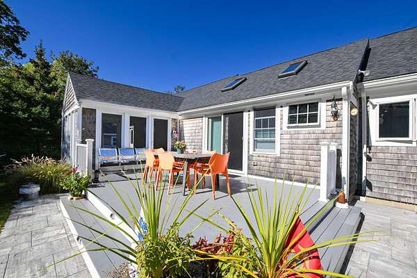 Turnkey Cape retreat just minutes from three of Brewster's eight beautiful beaches. This thoughtfully updated home blends classic coastal charm with modern comfort and extensive recent improvements. The inviting kitchen features new wood cabinetry, stainless steel appliances, and a striking soapstone island. The primary suite offers a luxurious bath, dressing area with laundry, and a bright office addition--creating a peaceful and functional retreat. Enjoy outdoor living in the private backyard oasis with a screened-in porch, new patio and deck, firepit, and hot tub--perfect for relaxing or entertaining after a day at the beach. Recent upgrades include a new roof, granite entry steps, stone walkway, updated windows and doors, new heating system, water heater, insulation, and electrical improvements. Remodeled baths, new flooring, updated lighting, and a cozy fireplace complete the interior. Five-bedroom septic offers future potential for a pool or ADU. Field card shows 5 bedrooms but primary ensuite renovations reduced bedroom number to 3+.