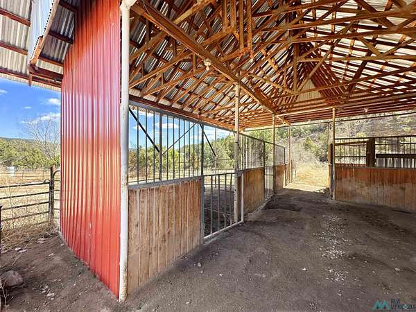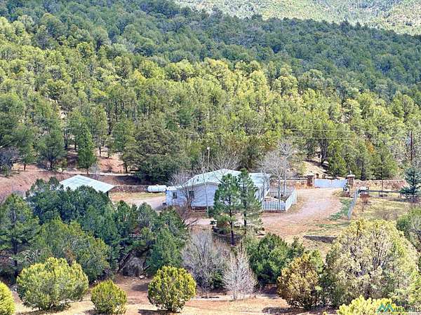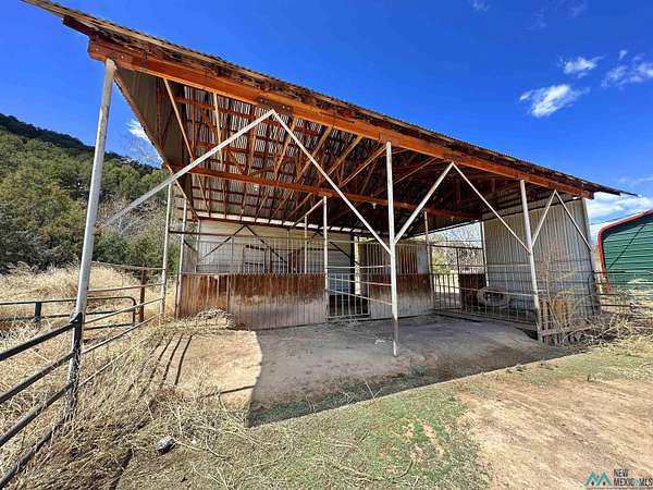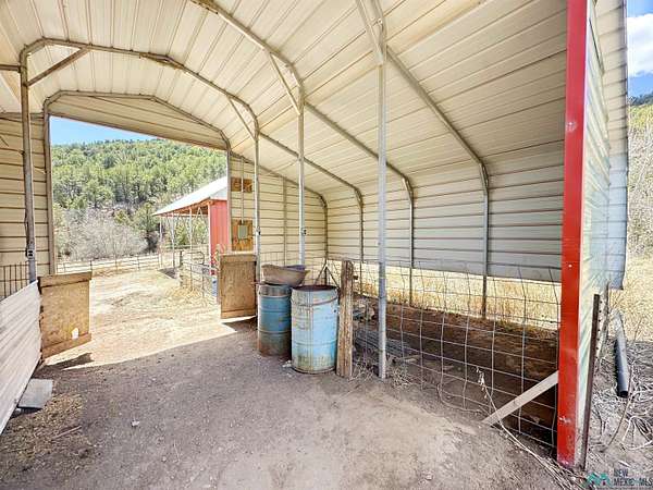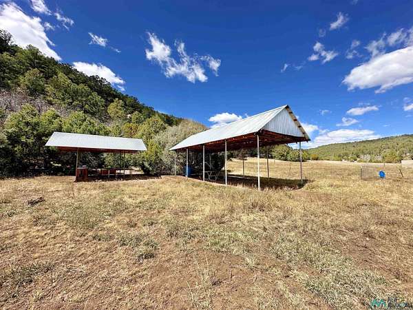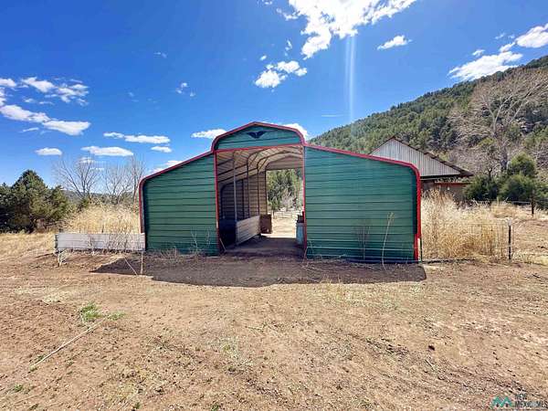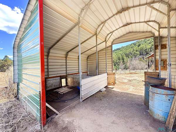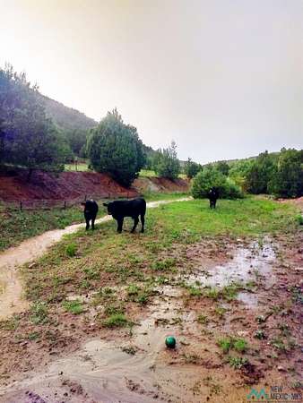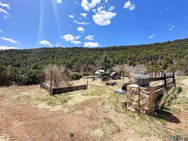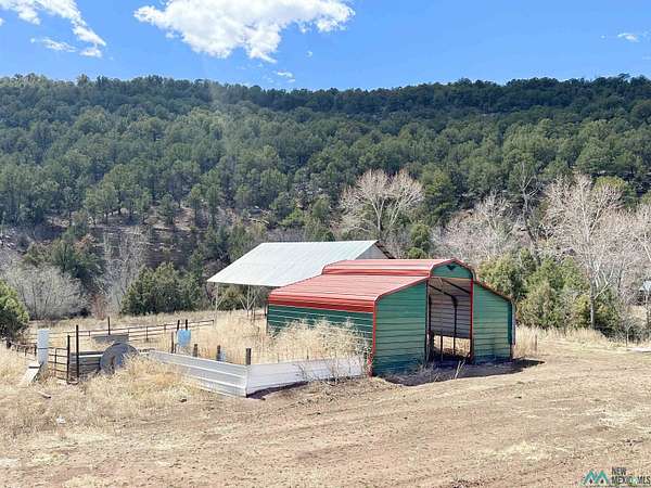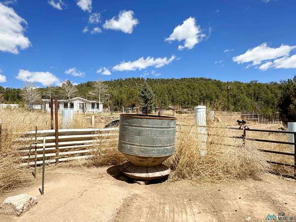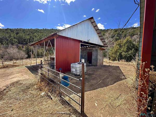 This 27+ acre northern New Mexico homestead features a 3-bed, 2-bath manufactured home, ready for your updates. Recent infrastructure upgrades include a new well pump and updated septic system. Natural water flow is guided by erosion control efforts and engineered drainage that feeds into a small seasonal pond. The property has been lovingly used as a small livestock farm with pens for pigs, goats, and chickens, plus corrals that can accommodate horses. The fenced pasture allows for some rotational grazing (electric fencing may need regular maintenance). A mature grapevine and a young orchard of apple and pear trees near the home offer food production potential, with space for expanded gardening. A large workshop/garage provides excellent storage for vehicles, tools, and ATVs, and includes an electric RV hookup. The acreage rises into a well-maintained pinon forest, which has been selectively thinned to provide both grazing and usable timber. The topography is steep in places but accessible from the northern boundary, where a natural shelf offers a potential wooded build site. The property shares a boundary with National Forest and is located near Bull Creek, offering both privacy and direct access to public land. Just 50 minutes from Santa Fe via well-maintained roads, this versatile property is ready for homesteading, recreation, or peaceful rural living with existing agricultural infrastructure and stunning natural surroundings.