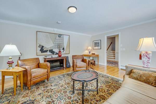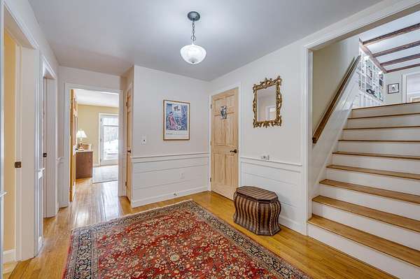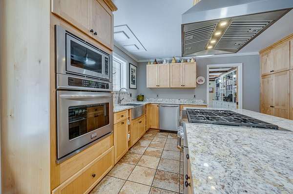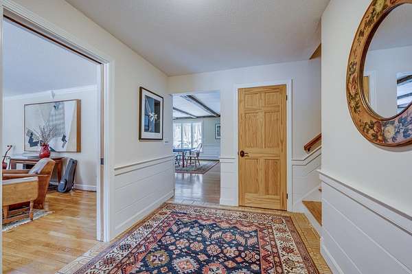 This beautiful 4(+)-bedroom, 4-bathroom home sits on over 4.5 acres, offering privacy and convenience close to downtown New London. Each room is spacious and comfortable, providing plenty of space for everyday living and entertaining, with hardwood and tile flooring throughout. Enter through the mudroom that has plenty of storage. The kitchen is an updated standout feature with wood cabinets, an island, gas range with hood, wall oven, granite countertops, and stainless steel appliances. A formal dining room with a wood-burning fireplace is perfect for special occasions, while an informal dining area offers a relaxed space for daily meals. The generous living room with pocket doors completes the main level. A primary bedroom with a walk-in closet and ensuite bathroom featuring a tiled walk-in shower, plus two additional bedrooms and a full bathroom are just five steps up on the upper level. The lower level adds two more bedrooms and a sitting room, ideal for guests. Additional features include a large basement, 2-car garage, stone patio surrounded by perennial gardens, a hot tub and custom stone walls. Minutes to Elkins Beach on Pleasant Lake. This home provides easy access to local shops and restaurants. Mount Sunapee Resort is 20 minutes away for winter recreation. New London Hospital is seven minutes away. Two miles to I-89 for easy access to the Upper Valley, Dartmouth Health, and Concord, all 30 minutes away. 1.5 hours to Boston. *Open House, December 20th, from 11 - 1