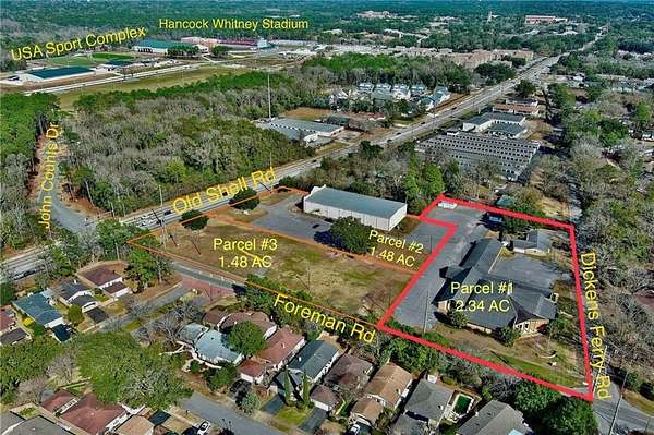 LOCATION-LOCATION-LOCATION Ideal location for a Visionary Church Ministry. USA Campus is adjacent to the church property and draws thousands of students annually. USA is the largest employer of professional in South Alabama! USA is not only a University but also a Hospital Complex that trains Doctors and Nurses as well a full Liberal Arts with Bachelors, Masters and PHD Degrees. Students from all over the international community come here to become Doctors, Nurses, Biologist, Chemist, Nuclear Scientist etc. The main sanctuary was remodeled in 2008 and will accommodate approximately 700 including the circular balcony. Color Accent lighting with special effects and spots remain. Also featured is a raised staging/platform. Three Large remote drop down over-head TV Projection screens remain. A very impressive and well equipped sanctuary for musical performances as well as singers and speakers! Many upgrades and remodels have been done through out the facility. Class rooms, offices, meeting rooms, bath rooms and have all been upgraded making this a very nice and presentable facility! There is a special children ministry wing, a youth meeting area, choir rooms, banquet area, Pastor's Study, Conference Room and nice rest rooms! The property has 3 buildings including the Church, the Parsonage, and a metal workshop. With frontage on both Foreman Rd. (241') and Dickens Ferry Rd. (453') there is plenty of exposure and has 3 access points to the church. Recently during the Senior Bowl at Hancock Whitney Football Stadium GracePointe Church made over $7,000.00 parking cars for the game! The congregation has recently relocated and are VERY MOTIVATED TO SALE! All measurements are approximate and not guaranteed, buyer to verify.