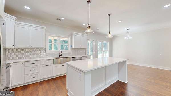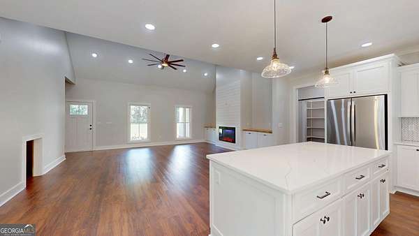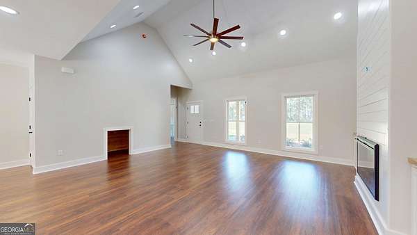 Welcome to 53 Jericho Lane! This beautiful 4 bed/3 bath, NEW CONSTRUCTION, modern farmhouse sits on a 5 ACRE parcel and offers approx 2,425 sq ft H/C with an additional 500 sq ft of covered outdoor living area! Features include an open concept with split bedroom plan, spacious family room with vaulted ceiling, electric fireplace and built-in cabinetry, open kitchen with island and dining, walk-in pantry with barn door, mud room with drop zone and coat closet, laundry room with utility sink and built-in cabinetry, owner's suite with spacious bathroom and large walk-in closet, upper level bonus/guest room with full bath, oversized garage, covered front porch (just under 200 sq ft), covered rear porch (just over 300 sq ft), rear patio, etc! Construction specs include raised slab foundation, concrete board siding, energy efficient items such as foam insulation, double paned windows and LED lighting, laminate flooring throughout, custom cabinets with soft-close hinges and slides, durable cultured marble master shower with glass enclosure, quartz countertops throughout, etc! Jericho Ln is a private drive located off Brooklet Denmark Rd within walking distance of SE Bulloch Middle & High Schools (listen to SEB football games from the comfort of your front porch). This property includes an additional gated entrance as well as an additional 1,000 gal septic system, perfect for a detached office or workshop. *Some property/deed restrictions may apply. Call Weichert, Realtors - Webb & Associates for additional information and/or to schedule showings.
