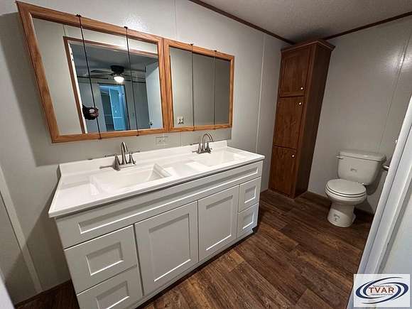 This home sets on 5.56 acres with frontage on two road with city water. The home is a 1995 16x80 mobile home with a custom, built roof over the home with attached front & back porches, and 17x14 and 14x39 carports. The home was updated in March 2025 with New Flooring, Lights, Kitchen Cabinets, Countertops, Mico-wave vent hood, Paint, New Vanity in Master Bath. The hall bath was totally redone with New vanity, toliet, tub with tile walls. The Living Room has a propane gas fireplace and the home has double hung tilt out windows. Also located on the property is a detached 24x24 garage with 16ft door, 32x24 side shed and a 17x 52 side shed. The home has two garden spots, circle drive and woods. Located within a few miles of the Natchez Trace State Park, The Tennessee River & Ky Lake is a short drive to enjoy fishing and boating. This home is located approx. 115 miles west on Nashville and 45 miles East of Jackson, Tennessee