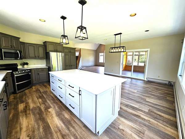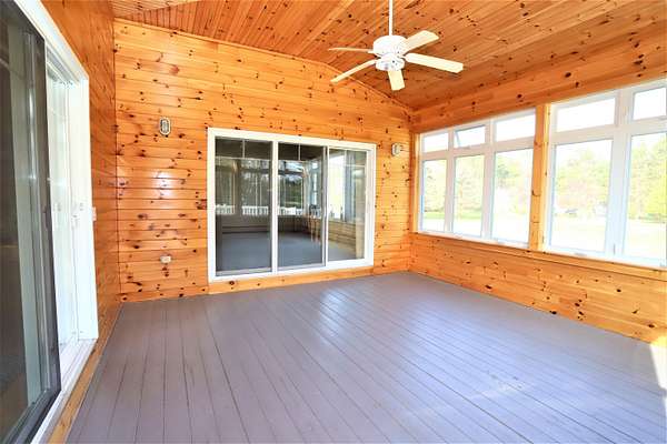 Featuring 4000+ sq. ft. of finished living space with 4-bedrooms, 4.5-bathrooms and situated on 2.96 acres. This beautifully renovated contemporary home offers private sandy beach access to the stunning Lake Memphremagog, just a short walk away, making it the perfect blend of modern living and lakeside tranquility. Renovations include an efficient Wells Mclain propane boiler & HTP hot water tank (Nov. 2025), sleek modern kitchen with quartz countertops, lighting, fresh interior paint, flooring, a sealed driveway and more. The landscaping has been revitalized, further enhancing the home's curb appeal. The spacious main level features an open-concept kitchen/dining area, a living rm with soaring cathedral ceilings, a primary en-suite, a mudroom, and a 3-season enclosed porch. Upstairs, you'll find a 2nd primary en-suite with a soaking tub, 2 additional bedrooms and a full bath. The walkout lower level has been finished with a large family rm, workshop and 2 versatile rooms that can serve as offices, guest rooms, or potential in-law/rental spaces. Additional features include a 5-car garage, wrap-around deck, patio and shed. Situated in a very desirable neighborhood; adjacent to the bike path, nearby MSTF x-country skiing & biking trails, VAST & VASA trail access from the property and all in a convenient location that is close to Newport & Derby amenities. Xfinity cable/high-speed internet. This serene home offers the perfect balance of nature and modern convenience.